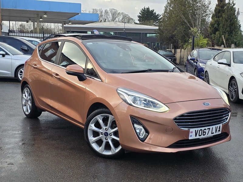 Insurance Group 10, 17in Alloy Wheel Style Pack,Blind Spot Information System with Cross Traffic Alert,Ford KeyFree System,Full LED Headlamps,Opening Panorama Roof,Parking Distance Sensors - Rear,Rear View Camera, 4.2in TFT Instrument Cluster Screen, B and O PLAY In-Car Audio Premium Sound System with Ford SYNC 3 Navigation System, Cruise Control, Driver Alert, Trip Computer, TSR - Traffic Sign Recognition, Tyre Pressure Monitoring System - TPMS, 16in Alloy Wheels - 10 Spoke, Chrome Belt Line Finisher, Chrome Upper Grille, Door Handles - Body Colour, Electrically-Operated Front Windows with One Touch Drivers, Front Bumper - Body Colour, Power Folding Door Mirrors with Puddle Lights, Quickclear Heated Windscreen, Rear Bumper - Body Coloured Upper and Self Colour Lower, Rear Privacy Glass, Rear Spoiler - Body Colour, Tyre Repair Kit, Front Fog Lamps with Cornering Lights, Headlights - Automatic High Beam Assist, Headlights - Automatic On-Off and Highbeam, Headlights - Halogen Projector with Black Bezel and Dedicated LED Daytime Running Lights, Rear Lights - LED Night Signature, 3-Spoke Leather Trimmed Steering Wheel with Audio Controls, Air Conditioning - Electronic Automatic Temperature Control - EATC, Automatic Rain Sensing Wipers and Auto-Dimming Rear View Mirror, Centre Console with Armrest and Illuminated Cupholders, Courtesy Light - Ambient LED Courtesy Lighting, Courtesy Light - Front Map Light and Rear - Overhead LED, Door Lever - Chrome Finish, Drivers Seat Lumbar Support, Floor Mats - Front and Rear - Velour, Floor Mats - Front and Rear with Contrast Stitching, Gearshift Knob - Leather-Trimmed, Glovebox - Illuminated, Headliner - Woven, Leather-Trimmed Handbrake, Manual Drivers Seat Height Adjustment, MyKey, Overhead Console - Sunglasses Holder, Rear Fog Lamps, Rear Seat - 60-40 Split Back and Cushion, Seats - Front Comfort Style, Steering Column - Rake and Reach Adjustment, Warning Triangle Storage, Power Steering, ABS - Anti-lock Braking System, Airbags - Driver, Airbags - Front and Rear Side Curtain, Airbags - Front Passenger, Airbags - Side Curtain, Airbags - Side Impact, EBD - Electronic Brakeforce Distribution, Electronic Stability Control - ESC with Traction Control and Emergency Brake Assist - EBA, Electronic Stability Programme - ESP with Hill Start Assist, Ford Easy Fuel System, IPS - Intelligent Protection System, NCAP Pack, Remote Central Locking and Engine Immobiliser, Tailgate Wash-Wipe, Thatcham Alarm.Here we have a Ford Fiesta 1.0 Petrol Automatic Titanium B&) Play in Bronze having done only 55k miles from new including the last service done less than 50 miles ago. Also comes with a long MOT until January 2027 with no advisories. Will come with 3 month warranty and 12 month AA breakdown cover included, with 2 keys present.The interior and exterior of the car have been looked after very well, it starts and drives perfectly with no issues at all. Being the top of the range spec this vehicle benefits from Panoramic Roof, Park Assist, B&O Sound System, Navigation, Apple CarPlay, Ford Connect, In-car Wi-Fi, Automatic Lights, Rear Privacy Glass, Bluetooth, Automatic Climate Control and Aux/USB capability. The car will be sold with extendable Warranty. We also offer Part Exchange / Delivery / Finance, HPI report available on request. Please call us on 0121 798 2352 for further enquiries. ===============================================================================Why not read our AutoTrader reviews to see what our customers think about their experience here and why they choose to buy from us, =============================================================================== Please contact our sales department for the latest finance offers on this vehicle. We have a dedicated team researching our used car prices daily to make sure we offer the best value cars in the market. ===============================================================================To arrange a personal viewing of this amazing car, or if you would like a tailored video to be emailed to you then please contact us. ===============================================================================Please give us a call for directions. Our postcode for Sat Nav direction is B25 8EL • Finance subject to status, T&C's apply.