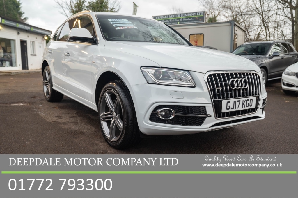PrestonInsurance Group 29, 2 Previous Owners, FULL SERVICE HISTORY, 74000 miles. HERE WE HAVE A STUNNING AUDI Q5 S LINE FINISHED IN GLACIER WHITE METALLIC WITH BLACK NAPPA LEATHER. THIS CAR HAS ALL THE STANDARD FEATURES YOU WOULD EXPECT FROM AN SUV OF THIS CALIBRE, INCLUDING SATELLITE NAVIGATION, BLUETOOTH, CRUISE CONTROL, HEATED SEATS, PARKING SENSORS, POWER TAIL GATE, NAPPA LEATHER INTERIOR, AND MUCH, MUCH MORE. POWERED BY THE LEGENDARY 2.0 TDI ENGINE KNOWN FOR ITS ECONOMY AND RELIABILITY, THIS FAMILY SUV IS ALSO FITTED WITH AUDI'S IMPRESSIVE QUATTRO SYSTEM TO ENSURE THE POWER AND GRIP IS DELIVERED WHEN THE CAR NEEDS IT. THIS CAR HAS A FANTASTIC SERVICE HISTORY WITH A DOSSIER OF INVOICES, CAMBELT AND WATERPUMP REPLACED 26/04/2023 AT 51,518 MILES , GEARBOX OIL SERVICE COMPLETED AT SAME TIME. RECENTLY SERVICED AND LONG MOT WITH NO ADVISORIES. FULLY HPI CHECKED AND CLEAR. WE OFFER FULL DEALER FACILITIES INCLUDING PART EXCHANGE, FINANCE AT COMPETITIVE RATES, INDEPENDENT WORKSHOP, AND EXTENDED WARRANTIES ARE AVAILABLE. ENJOY THE PROTECTION OF PURCHASING FROM A MOTOR DEALERSHIP ESTABLISHED IN 1994. ABS, Drivers airbag, ESP, Isofix child seat anchor points, Passenger airbag, Side airbags, Traction control, Tyre pressure monitor, Alarm, Immobiliser, Remote central locking.