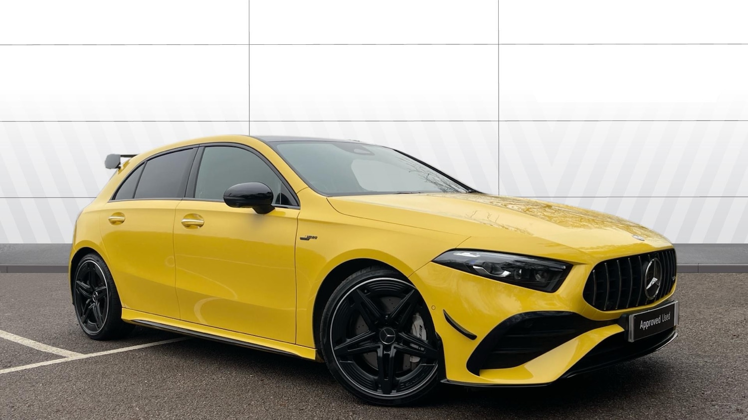 BracknellInsurance Group 35, 1 Previous Owner, 0, Feast your eyes on this 2023 Mercedes-Benz A350 4MATIC AMG Premium Plus (5dr Auto), a hot hatch that blends serious performance with cutting-edge luxury and everyday usability. With 27,624 miles and a last service completed on 29/04/2025 at 21,206 miles, this example is primed and ready for its next enthusiastic owner.Finished in the show-stopping Sun Yellow Metallic, this A-Class doesn’t just arrive, it announces itself. The aggressive stance is perfectly complemented by 19-inch AMG 5 Twin Spoke light alloy wheels, while inside you’re greeted by sumptuous black leather upholstery and a cabin that feels straight out of the future.Technology is where this A350 truly shines. The 360-degree camera and Active Parking Assist with PARKTRONIC turn tight city manoeuvres into a stress-free breeze, while Active Lane Keeping Assist and the Tyre Pressure Monitoring System work quietly in the background to keep you safe and informed on every journey. Add electrically folding door mirrors and you’ve got urban driving mastered.Comfort? Absolutely nailed. Sink into the heated, electrically adjustable front seats with memory, slide open the panoramic sunroof, set your perfect temperature with climate control, and let the MB Sound System deliver concert-quality audio. As night falls, the immersive ambient lighting transforms the cabin into a truly special place to be.Buy with complete confidence from Mercedes-Benz Ascot, where this car benefits from comprehensive warranty coverage and the reassurance that it has been prepared by manufacturer-trained technicians who know your Mercedes inside and out.This isn’t just a car, it’s a statement. Dynamic, intelligent, and irresistibly premium, the A350 4MATIC AMG Premium Plus is ready to thrill every time you press start..Air Conditioning, Climate Control, Cruise Control, Satellite Navigation, Alloy Wheels, Leather Seats, Heated Seats, DAB Radio, Bluetooth, Panoramic Roof, Parking Sensors, Full Service History, USB, Park Assist, Sun Roof, Electric Seats, Memory Seats, Keyless Entry-Push Button Start, Rear Camera, Electric Folding Mirrors, Lane Keeping Assist& Rain Sensors, AMG floor mats, Privacy glass, 4 Electric Front and Rear windows, Heated glass rear windscreen + timer control, Rain sensing windscreen wipers with two sensitivity settings, Rear windscreen wiper, ABS with Brake Assist, ESP with ASR, Electronic parking brake, ESP curve dynamic assist, Adaptive brake assist with hold function and hill start assist, Front brake calipers with AMG lettering, AMG suspension, Suspension with adaptive damping system, Hard-disk navigation, Hey Mercedes Voice activation, Dual bluetooth interfaces, Speed sensitive power steering, Direct steering, Attention assist, Quote Ref: 533707