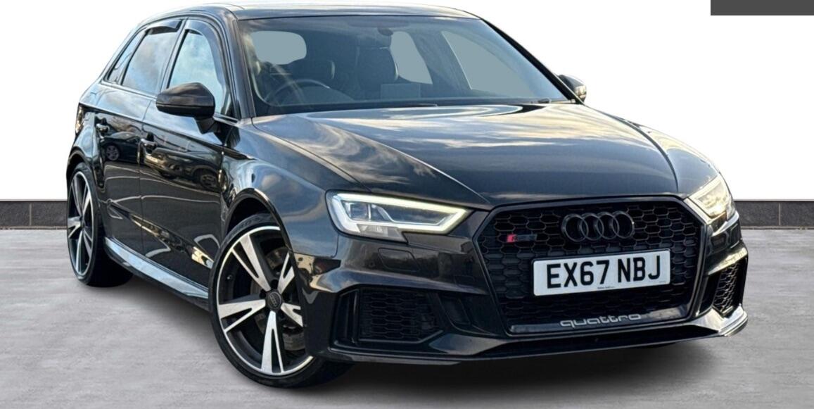 BedfordThis 2018 Audi RS3 TFSI offers exceptional provenance with a clear vehicle history check and a remarkably low mileage of just 43,000 miles for its age. Powered by a potent 2.5 litre petrol engine and featuring Audi's renowned four wheel drive system, this Euro 6 compliant model delivers exhilarating performance. It boasts a top speed restriction increase to 174mph and can achieve 0-62mph in a swift 4.1 seconds. Further enhancing its appeal are the Audi Magnetic Ride with RS Sport Suspension for dynamic handling, a Panoramic Glass Sunroof for an airy cabin, and the Comfort and Sound Package which includes keyless entry, a luxury branded sound system, and rear parking assistance with a camera. The striking Matrix LED headlights with dynamic indicators ensure excellent visibility.The generous boot space provides practicality for everyday use, making this RS3 a versatile choice. The inclusion of features such as the Audi Magnetic Ride and the impressive acceleration figures highlight how this vehicle surpasses many others in its class, offering a superior driving experience. The advanced lighting technology, including Matrix LED headlights and LED rear lights with dynamic indicators, not only enhances safety but also contributes to the car's sophisticated presence.