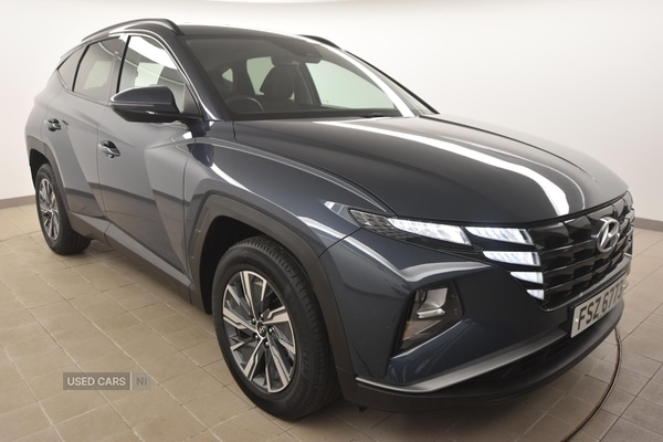 BelfastInsurance Group 12, 0 Previous Owners, The Hyundai TUCSON 1.6 TGDi SE Connect offers broad appeal for those seeking a reliable and comfortable vehicle for daily use. With a petrol engine and manual transmission, this model has covered 53,663 miles, reflecting regular usage. The driving experience is enhanced by electric front and rear windows, dual zone climate control, and supportive cloth upholstery, contributing to comfort on every journey.Power is delivered by a 150 bhp engine, allowing for responsive performance and assured acceleration when required. With a top speed of 117 mph and a 0-60 mph time of 10.3 seconds, this TUCSON provides a balanced blend of efficiency and capability suitable for a range of driving conditions.The exterior presents a refined look with blue paintwork, body colour bumpers, door mirrors, and exterior door handles. LED daytime running lights, halogen projector headlights, and high beam assist provide a modern appearance as well as enhanced visibility. Additional features include privacy glass for the rear windows and tailgate, roof rails, and stylish alloy wheels, while the interior benefits from a leather-wrapped steering wheel and gear knob.Specification highlights include a 10.25-inch touchscreen satellite navigation system with Apple CarPlay and Android Auto, a reversing camera, rear parking sensors, and cruise control for added convenience. Safety systems such as Forward Collision Avoidance Assist, lane keep assist, multiple airbags, and electronic stability control provide reassurance for all occupants. The TUCSON is also equipped with remote central locking, an alarm, and an immobiliser for security, while thoughtful details like adjustable head restraints, illuminated vanity mirrors, and a retractable load cover further enhance day-to-day practicality