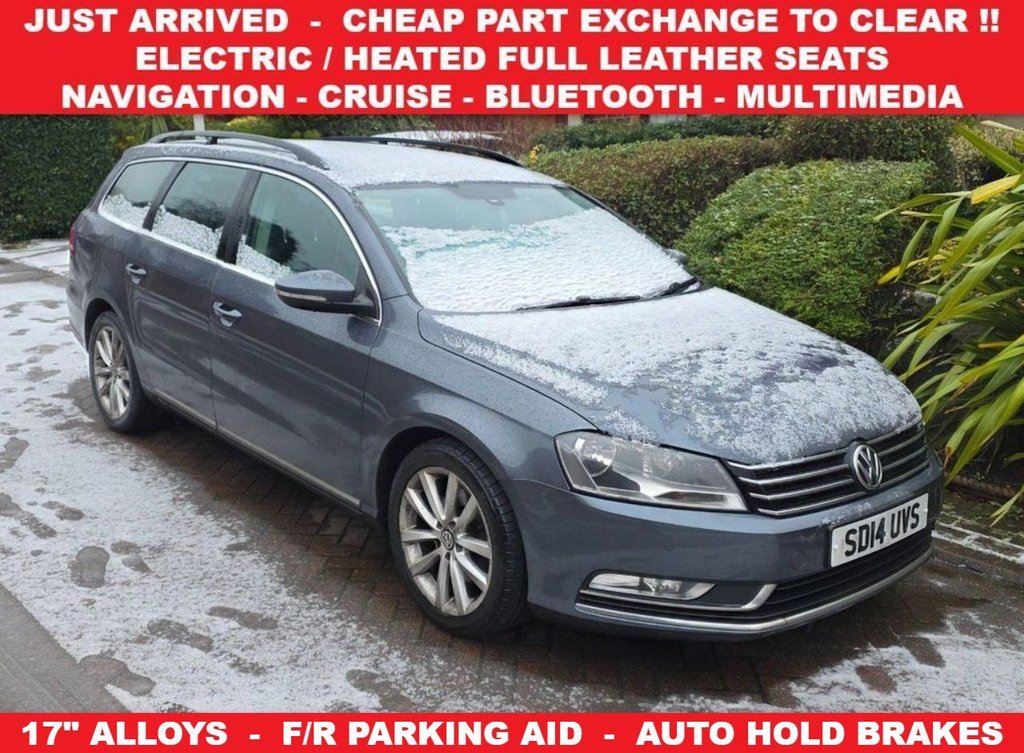 2 Previous Owners, GOOD SPECIFICATION EXECUTIVE MODEL + SPACIOUS AND ECONOMICAL 5 SEAT, 5 DOOR ESTATE + 2.0 TURBO DIESEL ( 140 PS ) BLUEMOTION TECHNOLOGY ( EURO 5 ) + AUTOMATIC-TIPTRONIC-PADDLESHIFT + ONLY 1 PREVIOUS KEEPER + DOCUMENTED PART SERVICE HISTORY RECORD + TIMING BELT REPLACEMENT HISTORY + ISLAND GREY METALLIC PAINTWORK AND FULL BLACK LEATHER UPHOLSTERY + ELECTRIC-HEATED FRONT SEATS WITH E/LUMBAR SUPPORT + BRUSHED ALUMINIUM INTERIOR TRIM + STOP-START SYSTEM + 17 INCH ALLOY WHEELS + FRONT-REAR PARKING AID WITH ACOUSTIC AND VISUAL ON SCREEN WARNING + BLACK ROOF RAILS + SATELLITE NAVIGATION SYSTEM + VOICE CONTROL + BLUETOOTH PHONE CONNECTIVITY + MULTIMEDIA + DAB DIGITAL RADIO-AUX + AUTO DUAL ZONE CLIMATE CONTROL- AIR CONDITIONING + ON BOARD COMPUTER AND DRIVERS INFORMATION SYSTEM + CRUISE CONTROL + TRACTION CONTROL + MULTIFUNCTIONAL LEATHER STEERING WHEEL WITH PADDLESHIFT CONTROLS + REACH-RAKE ADJUSTABLE STEERING COLUMN AND HEADLAMP AIM + POWER STEERING + REMOTE CENTRAL LOCKING + 4X ELECTRIC WINDOWS + HEATED E-DOOR MIRRORS + AUTO HOLD BRAKES + AUTO LIGHTS, AUTO WIPERS, AUTO DIMMING REAR VIEW MIRROR + TEMPERATURE CONTROLLED GLOVE BOX + SUNVISORS WITH ILLUMINATED VANITY MIRRORS + 12V SOCKET + ALARM-IMMOBILISER + ISOFIX + E-BOOT RELEASE + RETRACTABLE BOOT SPACE LOAD COVER +++ PLEASE NOTE :- THIS VEHICLE WAS TAKEN BY US IN PART EXCHANGE AND IS PRICED CHEAP FOR A QUICK SALE...IT WILL BE SOLD AS SPARES OR REPAIR...NO WARRANTY WILL BE GIVEN OR IMPLIED...ANY INSPECTION BEFORE PURCHASE IS WELCOME...PLEASE RING FOR MORE DETAILS ++++++++++++++++++++++++++++++++++++++++++++++++++++++++++++++++++++++++++++++++++++++++++++++++++++++++++++++++++++++++++++++++++++++++++++++++++++++++++++++++++++++++++++++++++++++++++++++++++++++++++++++++++++++++++++++++++++++++++++++++++++++++++++++++++++++++++++++++++++++++++++++++++++++++++++++++++++++++++++++++++++++++++++++++++++++++++++++++++++++++++++++++++++++++++++++++.Cargo Management System, Airbags - Side System Rear, Vienna Leather - Black, Multifunction Computer - Colour, Tyre Pressure Monitoring System - Electronic, High Beam Assist, Island Grey, Park Assist, Front Fog Lights with Cornering Lights, Seats - Front 12-Way Electric Adjustment, Luggage Compartment - Net, Heated Windscreen, Style Pack, Door Mirrors - Electrically Folding, Tinted Glass - Heat Insulating Rear 65 Percent Light Absorbing from B Pillar Backwards, 17in Alloy Wheels - Minneapolis, 12V Socket - Front Centre Armrest, 12V Socket - Luggage Compartment, 17in Alloy Wheels - Michigan, 2 Zone Electronic Climate Control with Automatic Air Recirculation, ABS - Anti-Lock Braking System, ASR - Anti Slip Regulation, Airbags - Curtain, Airbags - Driver, Airbags - Front Passenger with Deactivation Switch, Airbags - Front Seat Side Impact, Alarm with Interior Protection, Analogue Clock, Anti-Theft Wheel Bolts, Armrest - Front Centre with Storage Compartment, Armrest - Rear Centre with Storage Compartment, Automatic Boot Unlocking, Automatic Dimming Rear View Mirror, BAS - Brake Assist System, Bluetooth Telephone Preparation for Hands Free Profile Enabled Telephones, Body Coloured Bumpers, Body Coloured Door Handles, Body-Coloured Door Mirrors with Integrated Indicators, Brushed Stainless Steel Decorative Inserts in Dash and Centre Console and Door Panels, Carpet - Black, Carpet Mats - Front and Rear, Central Locking - Remote with 2 Remote Keys, Coasting Function, Colour Screen - 5in, Convenience Pack, Countersteer Support with Trailer Stabilisation Function, Cruise Control with Driver Alert System, Cup Holders - Front x2, Cup Holders - Rear x2, DAB+ - Digital Radio Reception, Daytime Running Lights, Differential Lock - Electronic, Door Mirrors - Automatic Dimming on Driver Side, Door Mirrors - Electrically Adjustable and Heated and Automatic Dimming, Door Side Impact Protection, EBD - Electronic Brake Pressure Distribution, ESP - Electronic Stability Programme, Electric Windows - Front and Rear, Electronic Engine Immobiliser, Electronic Parking Brake with Auto Hold Function, Exterior Temperature Gauge and Frost Warning Function, Flat Tyre Indicator, Front Seat Back Storage Pockets, Glovebox - Illuminated - Cooled - Lockable, Head Restraints - Front 4-Way Adjustment, Head Restraints - Front Whiplash Optimised, Headlights - Coming-Leaving Home Function, Headlights - Halogen Clear - Range Adjustable, Heated Front Seats, Heated Windscreen Washer Jets, Height and R