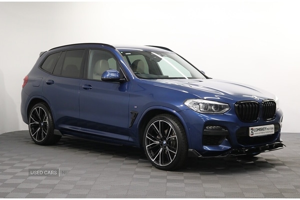 Newry0 Previous Owners, September 2020 BMW X3 20d M Sport 5dr Auto xDrive (190 ps)Specification includes £4140 optional factory equipment:- Technology Package- Loudspeaker System - Harman Kardon- Enhanced Bluetooth with Wireless Charging- BMW Mobility System- Sun Protection Glass- Vernasca Leather M Sport Seats - Oyster with Contrast Stitching- Phytonic Blue metallic paint...Additional to the optional factory equipment, the vehicle is also fitted with a Gloss Black M Performance style Aero Kit.Vehicle is offered in immaculate condition throughout and comes with a full service history.Vehicle is shown with a brand new upgrade 21" Alloy Wheel and Tyre package (£1250 optional extra) or it can be returned to the standard wheels, whichever suits you best.WHY BUY FROM US…• Multi Award winning family-run dealership• Over 150 Quality Used Vehicles on-site• Transparent and honest pricing without hidden costs• Top prices paid for your part exchange• Competitive finance packages tailored to suit your requirements• All vehicle's will come fully checked, serviced (if required) and valeted by our on-site technicians• All vehicles will come with a comprehensive Comiskey Motors in-house Warranty• Nationwide delivery service available• Complete Aftercare Services...We offer our customers great choice and value along with the highest level of customer service as standard. We are extremely passionate about what we do and we hope that shows in the buying experience. We look forward to meeting you soon and hope you will become one of our many happy customers