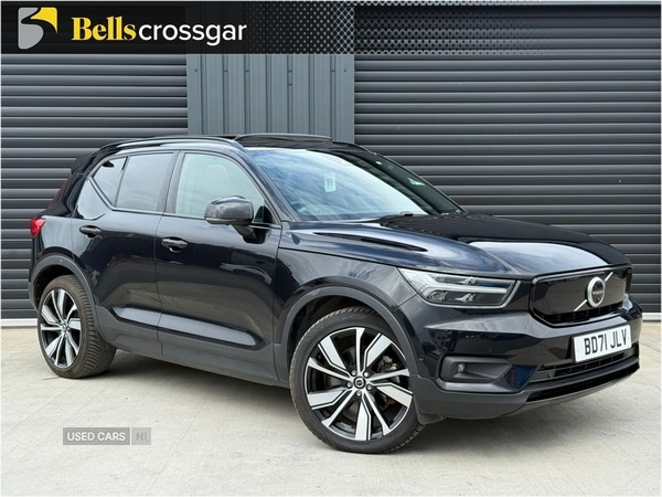 County Down0 Previous Owners, This 2021 Volvo XC40 Pro is an exceptional electric vehicle, offering a compelling blend of performance and practicality. As a Four Wheel Drive model, it boasts a substantial 78 kWh battery, providing a maximum range of 262 miles when new. Charging is convenient, with a full charge achievable at home using a 7kW charger in approximately 12 hours, and a rapid charge to 80% taking just 40 minutes at a public charging station. Experience exhilarating acceleration with a 0-60mph time of just 4.7 seconds, showcasing the dynamic capabilities of this XC40 Pro. Inside, you'll find a host of premium features designed for comfort and convenience, including heated front seats and a heated steering wheel, perfect for colder journeys. The power glass tilt and slide panoramic sunroof with sun curtain adds an airy feel to the cabin, while front park assist makes manoeuvring effortless. Furthermore, the generous boot space ensures you have ample room for all your luggage and shopping needs, making this Volvo XC40 Pro a superior choice for those seeking a refined and capable electric SUV