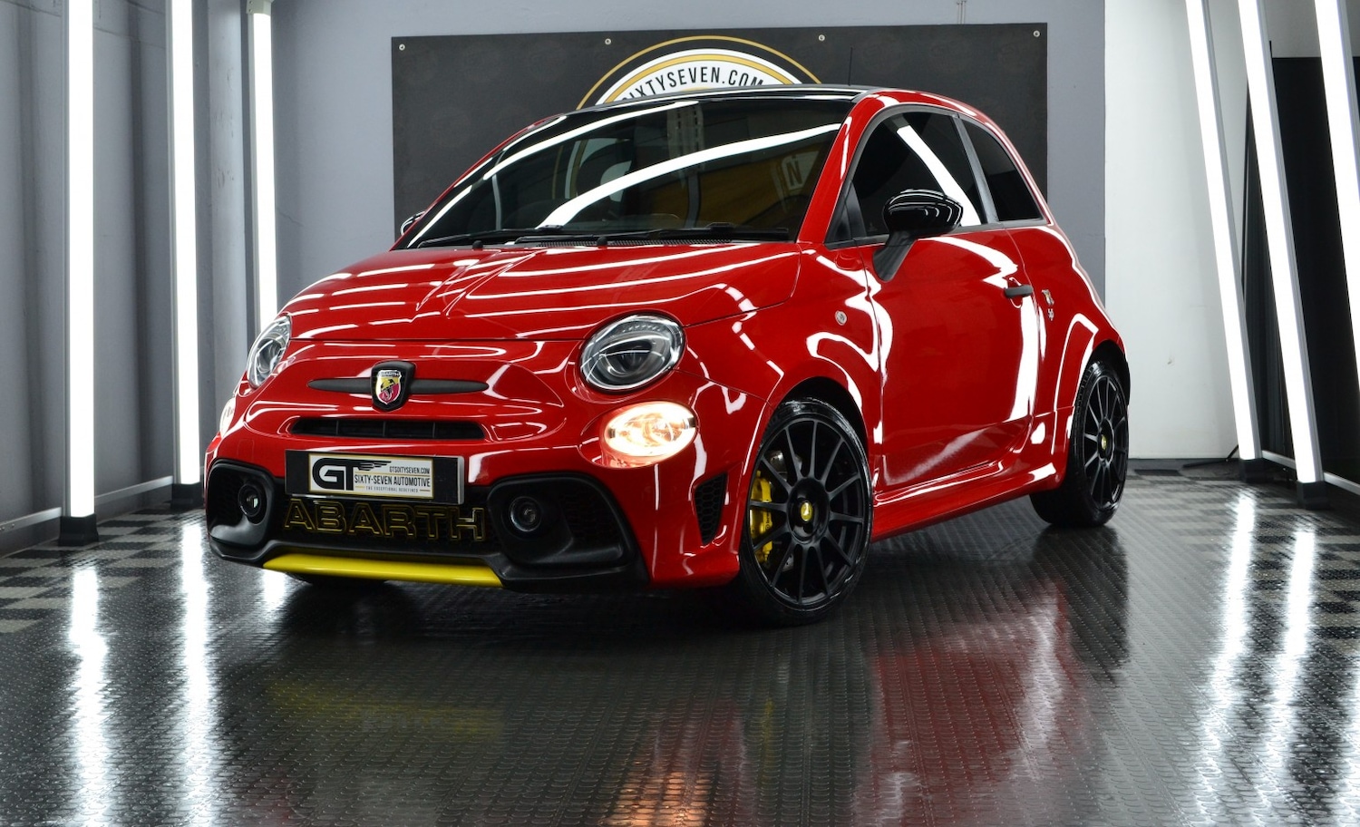 We are thrilled to offer from our collection this sensational 203 BHP Abarth 595 Competizione with a stage 2 tune from the name in Abarth tuning. This was developed to epitomise the soul of Abarth, a small hot hatch for the purist, designed for those who love no-compromise sportiness. In standard guise the Competizione produced 180BHP from it's 1.4L turbo charged engine, the extra 23 BHP it now produces after its tuning has transformed what was already a seriously impressive car. It produces such a glorious soundtrack way above its price point thanks to the Record Monza Exhaust, we are truly obsessed with the way this car sounds! It comes factory fitted with Koni Frequency Selective Damping shock absorbers that optimise the driving experience and safety by improving road handling, the wheels are shod with Michelin Pilot Sport 4 tyres further enhancing the ride. This is undoubtedly 1 of the most engaging small cars we have ever driven! This Competizione has had the all important belt change recently & new front 305mm brakes, it was last serviced by our local performance specialist of choice in 2025, less than 900 miles ago. Visually the immaculate matte Black 17" Supersport rims tie in beautifully with the freshly wrapped Black roof & spoiler. The wrapped yellow accents & grille badging further tie in with the Brembo brakes & add to a standout look & really makes the Rosso Red paintwork pop! Inside the cabin the Sabelt bucket seats not only look incredible, but they are some of the most supportive we have sat in! A further nice enhacement is the addition of an Alcantara dash & carbon gear stick. All of our vehicles are supplied with a minimum 6-month comprehensive warranty & 12 months MOT as standard; we are also able offer continuing peace of mind past this point with our superb extended warranty packages. For our clients wanting to maintain those ultimate showroom looks then we can offer exclusive pricing for the highest quality ceramic coating packages available, alongside underbody rust protection to help future proof your investment. The viewing of this vehicle is by an appointment basis only; this is to ensure we can give you our undivided attention in a very relaxed setting. The new custodian of this incredible little Italian Pocket Rocket will also have the opportunity to enjoy it to its full potential, thanks to a membership with our drivers club - Club GT350, we host members only driving events across the UK & Europe. Drive the life in 2026!