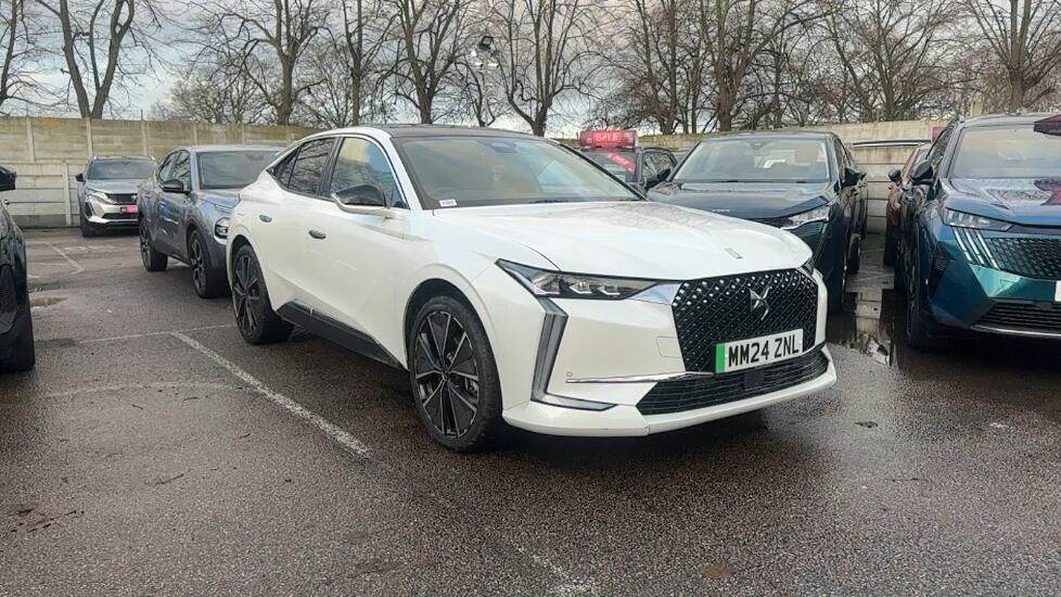 RomfordInsurance Group 31, 10in HD Touchscreen12v Socket x2 - Front Centre Console - Boot AreaBluetooth Handsfree and Media StreamingDAB Digital RadioDS Connect Box - Emergency and Assistance SystemDS Iris System - 3D Connected Navigation - Natural Voice Recognition - Bluetooth Connectivity - Over-the-air-updatesDS Smart Touch - 5.0in Colour Touchscreen - Customisable ShortcutsMirror Screen with Apple CarPlay and Android Auto with Wireless ConnectionShark Fin Roof Antenna - Body ColourStereo System - Includes Six LoudspeakersTomTom Speedcam - Danger Zones (3 Year Subscription From New)USB-C x4 - 2x Front and 2x RearWireless Charging for SmartphoneDrive Mode SelectorDS Extended Head-Up Display - CustomisableExterior Temperature Gauge - Includes Ice WarningFront and Rear Parking SensorsMulti-function Trip Computer - Includes Two Saved Trip ModesTyre Pressure Monitoring Sensors - IndirectVisio Park 3 - HD Front - Side and Rear Camera 360 Degree Vision - Rear Camera Wash System19in Alloy Wheels - Sevilla Diamond-cutAcoustic WindscreenBrilliant Black Front Grille with Chrome Accents - Chrome DS Wings and Chrome DS EmblemCharging Flap - Located Nearside - Lockable Remotely - Linked to Central LockingChrome Window SurroundsDark Tinted Rear WindowsDoor Handles - Retractable - Flush Fitting - Chrome FinishDoor Mirrors - Power Folding - Heated - Integrated LED Indicators - DS Puddle Lights - Reverse Gear Memorisation - Electrochromic-Auto DimmingDoor Mirrors - Two-tone Gloss Black Upper - Body Colour LowerDS 4 Inscription - Chrome Finish - Located on TailgateDS Emblem - Chrome Finish - Located on C-pillar x2DS Emblem - Chrome Finish - Located on Front Grille and TailgateDS Monogram - Front Leading Edge of Bonnet - Chrome FinishE-TENSE Inscription - Chrome Finish - Located on TailgateElectrically Opening SunroofExhaust Effect Trim - Chrome FinishFront and Rear Side Windows - Electric- One-Touch -Pinch ProtectionFront and Rear Side Windows - Laminated - Acoustic - 3.96mm ThicknessFront Door Sills - Stainless Steel - DS InscriptionFront Windscreen Wipers with Integrated Wash SystemFuel Filler Flap - Located Offside - Lockable Remotely - Linked to Central LockingHeated Rear WindscreenInterior Door Handles - Satin ChromeLocking Wheel NutsMatching Body and Roof ColourPuncture Repair KitRear Light Cluster Connecting Trim - ChromeSide Indicators - LED - Repeater Style - Door Mirror MountedSide Rocker Panel Trim - Grained Black - Chrome InsertAutomatic