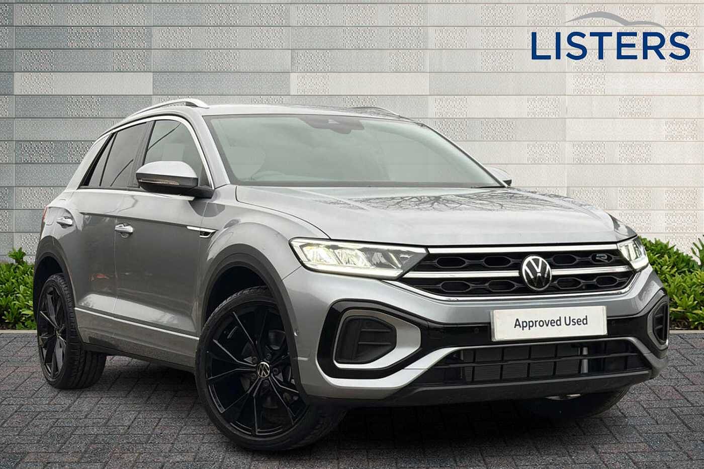 Ex-Demo, 0 Previous Owners, Franchise Approved, Available from 01/03/2026. Volkswagen T-Roc Hatchback 1.5 TSI R-Line 5dr DSG in Pyrite Silver. Specification Includes Safety,Rear view camera,Interior Features,Heated leather wrapped multi function sports steering wheel with tiptronic,Security,Keyless locking and starting system keyless access with safelock,Wheels,19in Misano alloy wheels with low rolling resistance and anti theft wheel bolts,Exterior Features,Front windscreen wiper with intermittent wipe and 4 position delay,Heated rear window,Power windows with comfort operation and circuit breaker,Privacy glass for rear side windows and rear window,Rain sensor,Rear wash/wipe with intermittent wipe setting,Body coloured exterior mirror housings and door handles,Extended roof spoiler,External USB type C socket and charging sockets,R-Line design body coloured bumpers,Rear exhaust tailpipe,Rear side wing doors,Automatic hazard lights activation under emergency braking,Automatic headlight control with LED separate daytime running lights with coming/leaving home function,LED 3rd brake light,LED rear combination lamps,LED rear number plate lights,Rear fog light on one side and reversing lights on both sides,Safety,ABS,City emergency braking and pedestrian monitoring,Electronic parking brake,Electronic Stability Control (ESC) inc EDL (Electronic Differential Lock) and ASR (Traction Control),Hill start assist,Rear disc brakes,Volkswagen roadside assistance,Advanced driver attention and drowsiness monitor,Lane keeping system Lane Assist,Modified key software - reduce switch off time for key status change to Long no motion,Park assist including front and rear parking sensors,Auto dimming interior rear view mirror,Electrically adjustable and heated door mirrors,Exterior mirrors aspherical on driver side- convex on front passenger side,Remote electrically foldable door mirrors- puddle lights and reverse activated passenger's door mirror,3 point height adj front seatbelts + pretensioners,3 point seatbelts in outer rear with ECE label,Child locks on rear doors,Driver and front passenger airbag with front passenger airbag deactivation,Driver and front passenger safety-optimised head restraints,Drivers seatbelt reminder,Front and rear passengers curtain airbag system including front side airbags,Predictive pedestrian protection,Two tone horn,Tyre pressure loss indicator,Interior Features,Front + rear carpet mats,Air care climatronic air conditoning system with active combination filter and 2-zone temperature