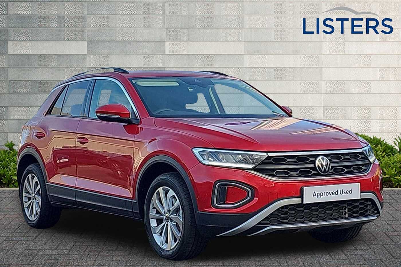 Stratford-upon-AvonEx-Demo, Insurance Group 24, 0 Previous Owners, Franchise Approved, Available from 30/01/2026. Volkswagen T-Roc Hatchback 1.5 TSI Match 5dr DSG in Kings Red. Specification Includes Exterior Features,Metallic paint,Packs,Winter pack without heated windscreen washer jets - T-Roc,Wheels,17in Johannesburg alloy wheels with low rolling resistance and anti-theft wheel bolts,Exterior Features,Front windscreen wiper with intermittent wipe and 4 position delay,Heated rear window,Power windows with comfort operation and circuit breaker,Privacy glass for rear side windows and rear window,Rain sensor,Rear wash/wipe with intermittent wipe setting,Front shock absorption,Rear shock absorption chassis with increased ride height,Black roof rails,Body coloured bumpers and radiator grille with chrome trim and front fog lamps with chrome bezel,Body coloured exterior mirror housings and door handles,Extended roof spoiler,External USB type C socket and charging sockets,Rear exhaust tailpipe,Rear side wing doors,Automatic hazard lights activation under emergency braking,Automatic headlight control with LED separate daytime running lights with coming/leaving home function,LED 3rd brake light,LED rear combination lamps,LED rear number plate lights,Rear fog light on one side and reversing lights on both sides,Safety,ABS,City emergency braking and pedestrian monitoring,Electronic parking brake,Electronic Stability Control (ESC) inc EDL (Electronic Differential Lock) and ASR (Traction Control),Front disc brakes,Hill start assist,Rear disc brakes,Volkswagen roadside assistance,Advanced driver attention and drowsiness monitor,Dynamic road sign display,Lane keeping system Lane Assist,Modified key software - reduce switch off time for key status change to Long no motion,Park assist including front and rear parking sensors,Power assisted speed sensitive steering,Rear view camera,Auto dimming interior rear view mirror,Electrically adjustable and heated door mirrors,Exterior mirrors aspherical on driver side- convex on front passenger side,Remote electrically foldable door mirrors- puddle lights and reverse activated passenger's door mirror,3 point height adj front seatbelts + pretensioners,3 point seatbelts in outer rear with ECE label,Child locks on rear doors,Driver and front passenger airbag with front passenger airbag deactivation,Driver and front passenger safety-optimised head restraints,Drivers seatbelt reminder,Front and rear passengers curtain airbag system including front side airbags,Predictive pedestrian protection,Two tone horn,Tyre pressure