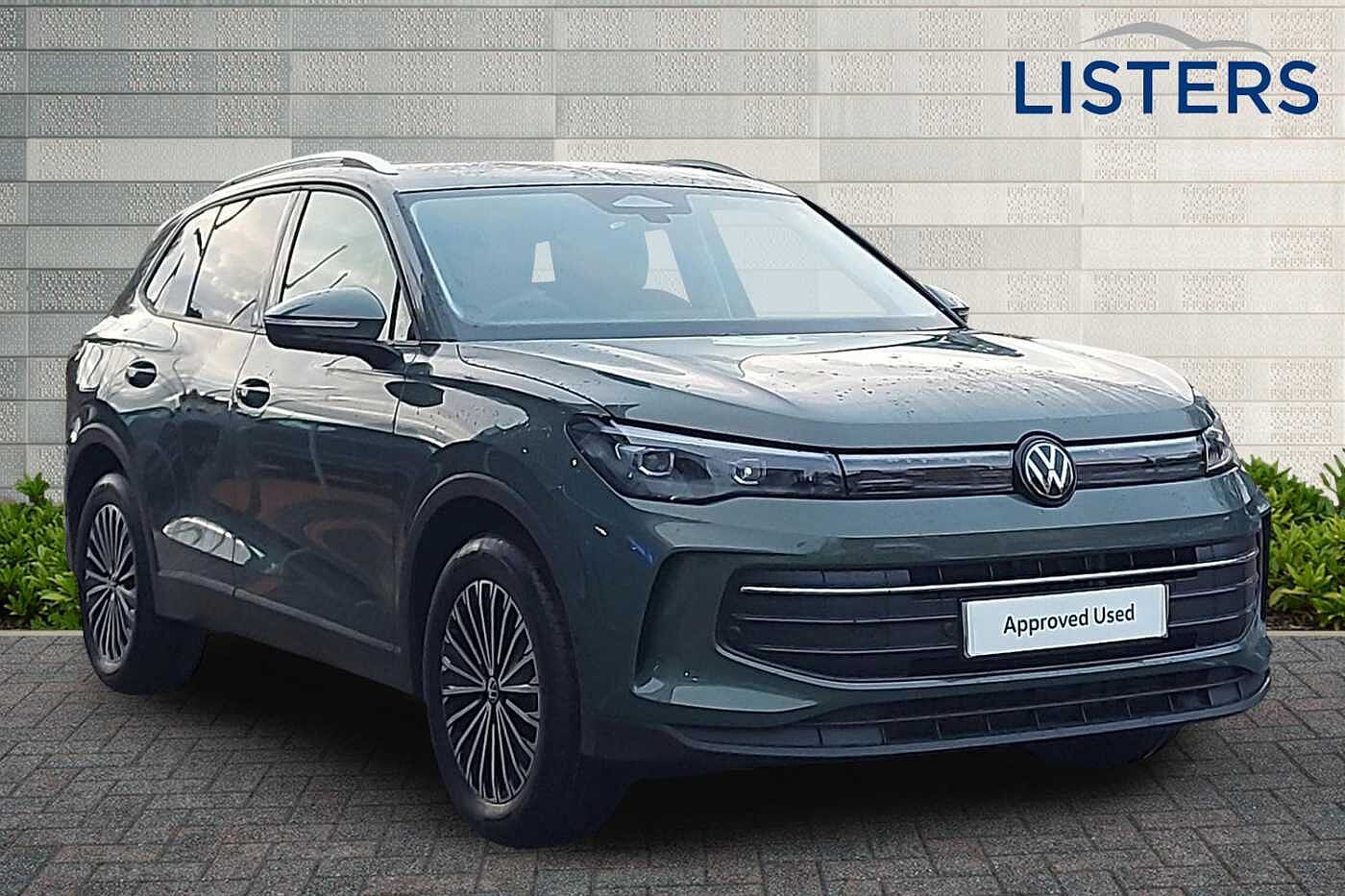 Ex-Demo, Insurance Group 21, 0 Previous Owners, Franchise Approved, Available from 24/03/2026. Volkswagen Tiguan Estate 1.5 eTSI 150 Match 5dr DSG in Cipressino Green. Specification Includes Exterior Features,Metallic paint,Safety,Multifunction front facing camera,Rear view camera,Interior Features,Cloth upholstery,Leather wrapped multifunction steering wheel with paddle shift,Packs,Winter pack - Tiguan,Paint - Metallic,Metallic - Cipressino green,Trim - Cloth,Cloth - Grey melange soul,Wheels,18in Napoli alloy wheels with anti theft wheel bolts,Exterior Features,Heat insulating glass in side and rear windows,Heat insulating windshield,Heated rear window,Rain sensor windscreen wipers,Rear wiper,Front wheel drive,Body coloured bumpers and air intake with chrome trim,Body coloured door handles,Illuminated door handle recesses,Rear side wing doors,Automatic headlight control system,Coming/leaving home lighting function,High level 3rd brake light,Illuminated lightline between headlamps,Rear fog light on one side- reversing light on both sides,Safety,Electronic parking brake with auto hold,Front disc brakes,Hill start assist,Rear disc brakes,Adaptive cruise control (ACC),Advanced driver attention and drowsiness monitor,Dynamic road sign display,Front Assist - Autonomous emergency braking with pedestrian and cyclist monitoring,Lane change system- Side assist- Rear traffic alert and Exit warning system,Lane keeping system Lane Assist,Oncoming vehicle braking when turning including swerve support,Park assistance plus with front and rear parking sensors,Power assisted steering with speed sensitive,Auto dimming interior rear view mirror,Body-coloured exterior mirror housings,Puddle lights and reverse activated passengers door mirror,3 point seat belt for centre rear seats,3 Point seat belts in front with pretensioners,3 point seatbelts in outer rear with ECE label,Driver and front passenger airbag with front passenger airbag deactivation,Front and rear curtain airbags,Front and rear side airbags,Front centre airbag,Manual child proof rear door locks,Two tone horn,Warning triangle,Interior Features,Carpet mats- front and rear,Air care climatronic 3 zone air conditioning system with rear air conditioning control panel,12V outlet in center console rear and in luggage compartment,12V socket in centre console,Ceramique headlining,Door and side trim panel in foam film and woven fabric,Front centre armrest,Variable luggage compartment floor,Sun visors with illuminated vanity mirrors,Audio / Communications,Bluetooth mobile phone