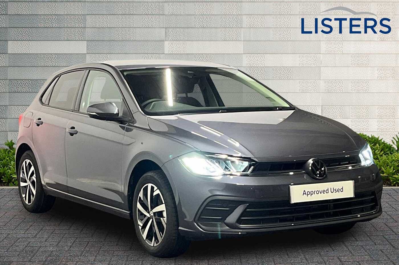 Stratford-upon-AvonInsurance Group 11, 1 Previous Owner, Franchise Approved, Available from 30/03/2026. Volkswagen Polo Hatchback 1.0 TSI Match 5dr in Smokey Grey. Specification Includes Exterior Features,Electric front windows,Heat insulating and laminated safety glass windshield,Rain sensor,Rear electric windows,Rear tinted glass from Bpillar backwards approx 65% tinted,Rear windscreen washer and wiper with interval delay,Front wheel drive,Rear shock absorpion,Body colour bumpers with chrome inserts,Body colour door handles,Engine badge deletion,Rear side wing doors,Automatic headlight control with LED separate daytime running lights with coming/leaving home function,Headlight range adjustment,LED Headlights,LED rear combination lamps,Rear fog light,Third brake light,Safety,ABS,ESC (Electronic stability control) + EDL (Electronic Differntial lock) and ASR (Traction control),Front assist with autonomous emergency braking (for Adaptive Cruise Control ACC up to 130 mph),Front disc brakes,Hill hold control,Rear drum brakes,Adaptive cruise control without followtostop and speed limiter,Advanced driver attention and drowsiness monitor,Dynamic road sign display,Multifunction front facing camera for distance control,Power assisted speed sensitive steering,Rear view camera,Automatic dimming interior rear view mirror,Body colour door mirrors,Power folding adjustable/heated exterior mirrors and front passenger exterior mirror lowering function,3 point height adj front seatbelts + pretensioners,3 point seat belt for centre rear seat,3 point seatbelts outer rear with ECE lable,Driver and front passenger airbag with front passenger airbag deactivation,Drivers and front passengers safety optimised head restraints,Extended and predictive pedestrian/ cyclist protection,Front curtain and side airbags with center airbag,Manual child lock in rear doors,Single tone horn,Tyre pressure loss indicator,Audio / Communications,Bluetooth mobile phone interface,Preparation for We connect and We connect plus,Wireless app connect,DAB Digital radio,Diversity antenna for FM reception,Driver Convenience,Standard rear axle,Travel Assist Lane keeping system and traffic jam assist,Miscellaneous,Emergency call service,Preparation for navigation system with media and internet package,Speedo and rev counter electronic odometer trip service interval display and exterior temperature gauge,Travel assist including emergency assist,Trip computer,Warning signal and warning light for front and rear seatbelts not fastened,Washer fluid level indicator,Startstop