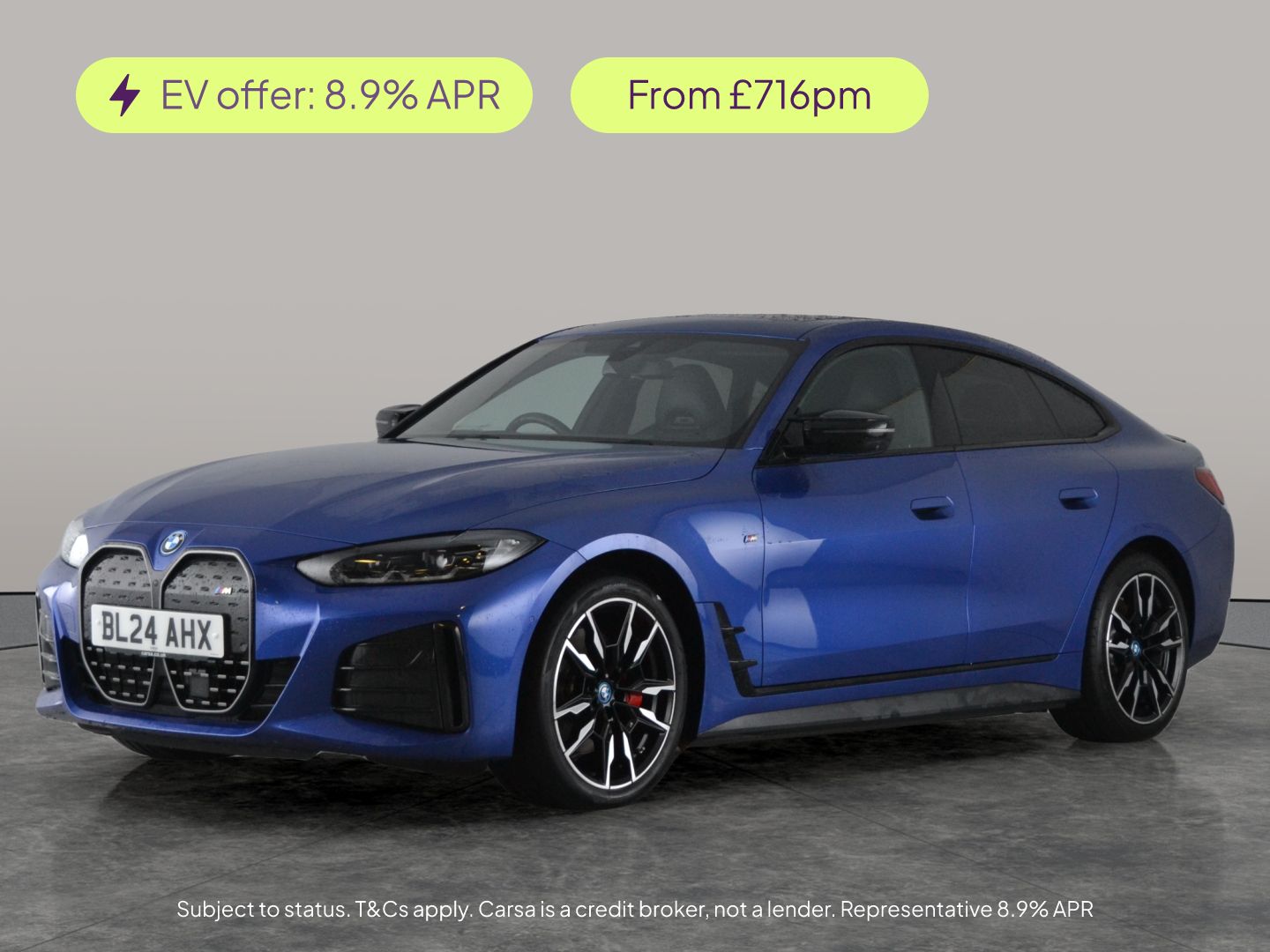 0 Previous Owners, Experience pure electric excitement with this striking blue BMW i4 Gran Coupe. Enjoy the open skies with a sunroof and park effortlessly with Parking Assistant Plus and a reversing camera. The luxurious Vernasca leather interior, carbon fibre trim, heated sports seats, and front lumbar support bring comfort to every drive. Stay connected with Apple CarPlay and a Harman/Kardon sound system, while advanced tech like adaptive cruise control, head-up display, LED headlights, and BMW Live Cockpit Professional deliver a dynamic and sophisticated journey. 2 services recorded, last serviced on 17/12/2025 at 7,504 miles. MOT to 22/05/2027. Visit our website for service history, online valuation, full vehicle specification plus multiple images. Certain features listed may be available via subscription packages at extra costs, please consult with BMW for details. This vehicle is VAT qualifying. Any feature/option specified here is from 3rd party data. We cannot guarantee the accuracy of any specification supplied by a 3rd party. We recommend that you physically check the specification of the vehicle on site prior to purchase. This information does not form part of the buying contract. Terms & Conditions apply. We have over 2,000 cars available from our 10 national branches, check our website to see all our stock. Our Trustpilot rating is 4.4/5 with over 9,000 reviews.