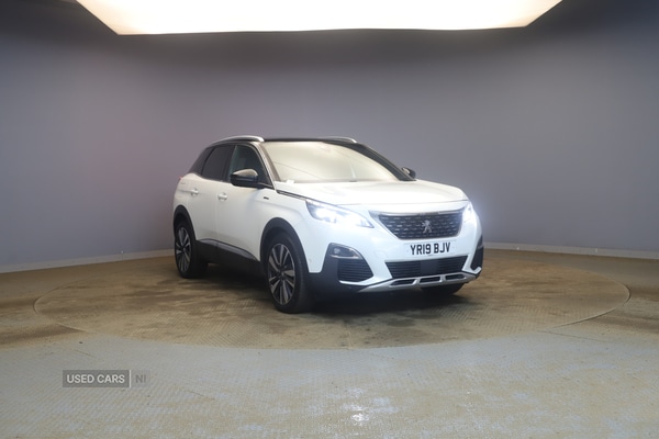EglintonInsurance Group 17, 1 Previous Owner, Boasting a full dealership service history with the last service completed on 28th October 2025 at 56,285 miles, this 2019 Peugeot 3008 GT Line offers excellent provenance. This stylish SUV is equipped with a 1.2 litre Euro 6 petrol engine, delivering an impressive 0-62mph in just 9.5 seconds. Notable features include front and rear parking sensors, Visio Park 1 with a 180 degree colour reversing camera, and full LED headlights. Inside, you will find blue ambient lighting to the head up instrument panel and automatic dual zone climate control for your comfort.This Peugeot 3008 GT Line also stands out with its exceptional fuel economy, achieving 46 mpg, and its low CO2 emissions, which are better than many similar vehicles. Its large boot space makes it a practical choice for families and those needing extra room. Furthermore, this model benefits from a low insurance group, indicating that running costs are kept to a minimum. A 12 month warranty is also included for your peace of mind.
