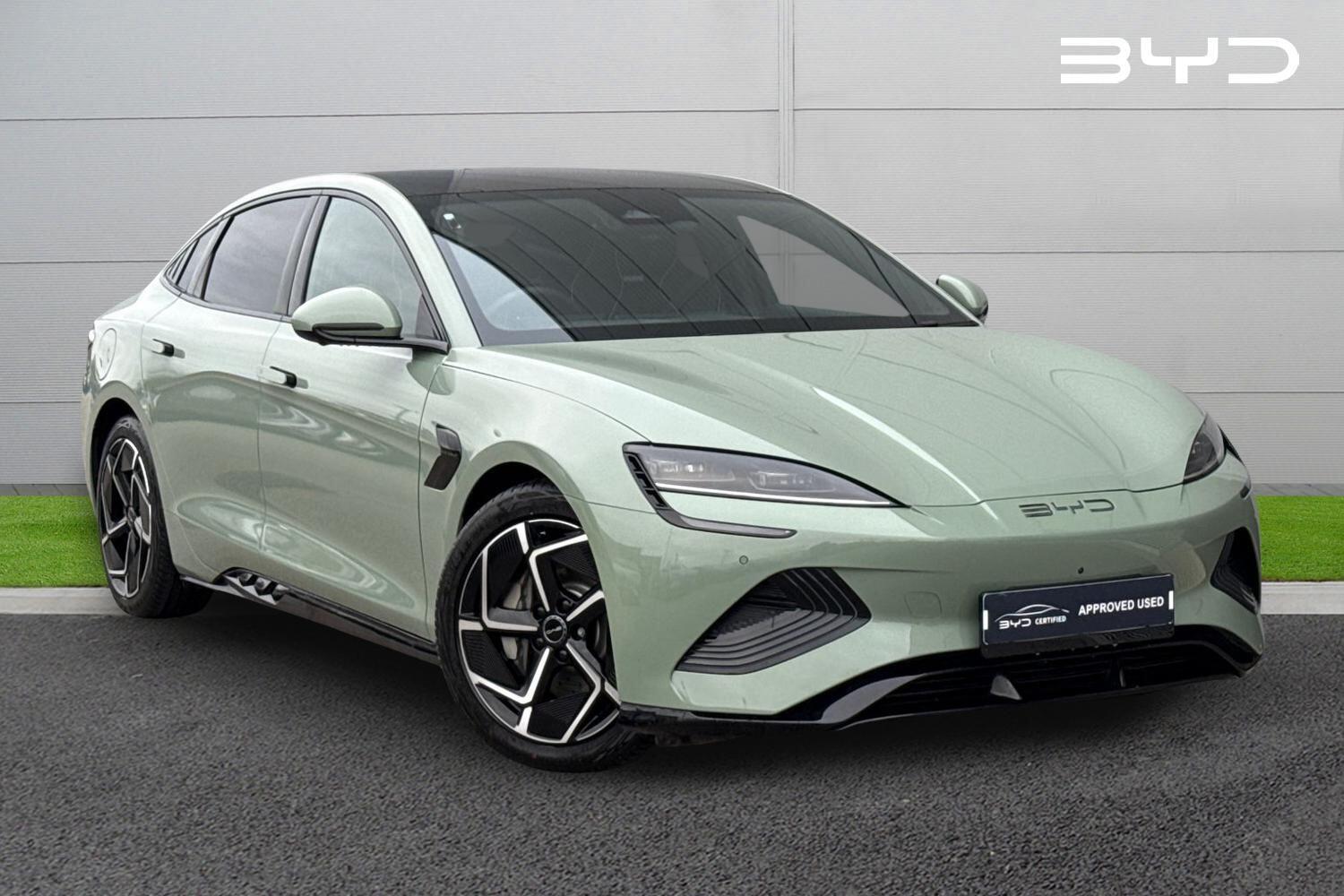 Crewe0 Previous Owners, This Approved Used 2025 BYD Seal Excellence finished in beautiful Shadow Green paint. This futuristic electric saloon boasts a powerful Four Wheel Drive system and a substantial 82.5kWh battery, offering an impressive WLTP range of 323 miles. Rapid charging is supported, providing a top-up from 10%-80% in just 26 minutes, while AC charging will take around 8.5 hours. Inside, youll find a luxurious experience with a leather multi-function steering wheel that includes heating, and a front passenger seat with electric adjustment, ventilation, and heating, all contributing to a comfortable journey. Theres a superb amount of legroom for rear seat passengers, The vehicle also features auto air conditioning for perfect climate control, keyless entry and start for ultimate convenience, and front parking sensors to assist with manoeuvring. From the drivers seat youll notice the digital instrument display, and at the centre of the dashboard sits the impressive 15.6in rotating touchscreen. This media system offers tons of fab features, including DAB radio, satellite navigation, Bluetooth interface and Apple CarPlay/Android Auto. and more. You can also set up the scheduled charging, and customise vehicle settings such as the steering and brake assist. The Seal offers a whole host of safety features too, including adaptive cruise control and blind spot monitoring. Pop the car into reverse and youll see the high-definition 360-degree camera. Experience the future of sustain...