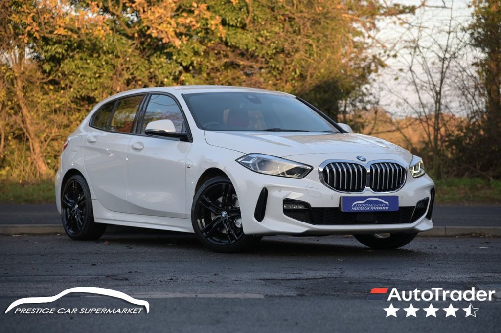 Prestige Car Supermarket in York presents this 2019 BMW 1 Series 1.5 118i M Sport, a sporty five-door hatchback delivering 140 ps through a smooth DCT gearbox and finished in Alpine White with striking Magma Red Perforated Dakota Leather. Its athletic stance is defined by 18in M Double-Spoke 819M alloy wheels, M Sport suspension, M aerodynamic styling, High Gloss Shadowline trim and LED headlights with front LED fog lights. The interior combines driver focus and premium comfort with heated M Sport front seats, a multifunction M steering wheel, illuminated Boston interior trim, anthracite headlining, extended lighting, dual-zone automatic air conditioning and a folding front armrest with storage. Technology highlights include BMW Live Cockpit Plus, BMW ConnectedDrive services, Connected Package Plus, Bluetooth audio and hands-free capability, DAB radio, an on-board computer and rain sensors with automatic headlight activation. Practical features include electric windows with fingertip control, electrically folding anti-dazzle mirrors, extended storage, a luggage compartment package and 60-40 split folding rear seats. Convenience and driving aids comprise cruise control with brake function and limiter, Park Distance Control front and rear, performance control, Drive Performance Control with ECO PRO and Comfort modes, keyless start, a rear wiper and welcome lighting. Safety systems include Active Guard Plus, DSC Plus, tyre pressure monitoring, ISOFIX points, airbags, side impact protection, a crash sensor, childproof locks and a Thatcham 1 alarm with immobiliser..12V Power Socket in Centre Console Front with Blanking Plug, 18in Alloy Wheels - Double-Spoke Style 819M, Active Guard Plus, Air Conditioning Automatic with Two-Zone Control, Airbags, Alarm System - Thatcham 1 with Remote Control and Engine Immobiliser, Armrest - Front - Folding with Storage Compartment, Attentiveness Assistant, Automatically Dimming Rear View Mirror, BMW ConnectedDrive Online Services, BMW Emergency Call, BMW Live Cockpit Plus, BMW TeleServices, Bluetooth - Audio Streaming - with Compatible Devices, Bluetooth Hands Free with USB Audio Interface, Bumper System Front and Rear - Replaceable Deformation Elements for Impacts Up to 9mph, Central Locking Switch - Doors - Fuel Filler Cap - Luggage Compartment, Check Control Warning System for Monitoring of Lights and Door-Luggage Compartment Open Warning, Child Seat ISOFIX Attachment For The Two Outer Rear Seats And Front Passenger Seat, Childproof Locking System - Rear Doors and Electric Windows, Condition Based Service, Connected Package Plus, Contrast Stitching - Instrument Panel, Crash Sensor, Cruise Control with Brake Function and Speed Limiter, Cupholders - Two Front Centre Console, DAB Digital Radio, DSC - Dynamic Stability Control Plus, Dead-locking Function System to all Doors, Direction Indicator Side Lights Integrated in Exterior Mirrors, Door Sill Finishers in Black Plastic with Inserted M Designation in Metallic Look - Front Only, Drive Performance Control with ECO PRO and Comfort Modes, Drive-Away Locking System on All Doors-Luggage Compartment - Can Be De-Activated in iDrive Settings, ECO PRO Mode, EPS - Electric Power Steering, Electric Handbrake, Electric Windows - Front and Rear with Open-Close Fingertip Control - Trap Release and Child Lock Function, Exhaust Tailpipe - Chrome - Single Round 90mm - Left, Extended Lighting, Extended Storage, Exterior Mirrors - Electrically Folding with Anti Dazzle, Exterior Parts in Body Colour, Exterior Trim - High Gloss Shadowline, Front Windscreen Wipers with Integrated Washer Jets, Glove Box with Light, Grab Handles - Integrated in Roof Linings - Four, Headlining - Anthracite, Heat Protection Glazing with Green Tint, High Level Third Brake Light, Illuminated Boston Interior Trim, Integrated Owners Handbook - Within iDrive Menu, Interior Lighting, Kidney Grille - Chrome Frame with Satin Aluminium Struts, LED Fog Lights - Front, LED Headlights, Locking Wheel Bolts, Luggage Compartment Package, M Logo Designation Chrome - Side, M Sport Aerodynam