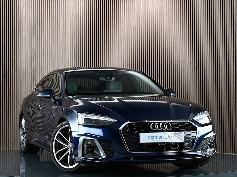 Insurance Group 33, 1 Previous Owner, Leather-Alcantara - Sport Seats with S Embossed Logo - Rotor Grey with Anthracite Stitching,Navarra Blue, 8 Passive Loudspeakers, Audi Connect Infotainment Services (36 Month Subscription From New), Audi Connect Safety and Service, Audi Phone Box with Wireless Charging, Audi Smartphone Interface, DAB Digital Radio Reception, MMI Navigation Plus with MMI Touch, Two Additional USB Ports for Rear Passengers in the Rear Centre Console, Audi Drive Select, Cruise Control System with Speed Limiter, Parking System Plus - Front and Rear Sensors, Rear-View Camera, Voice Control, 19in Alloy Wheels - 8.5J 5-Spoke-Cavo Design - Contrasting Grey - Partly Polished, Anti Theft Locking Wheel Bolts, Door Handles - Body Coloured, Electric Windows - Front, Front Spoiler Lip in Body Colour, Privacy Glass, Radiator Grille with Honeycomb Structure in Grained Matt Black, S Line Badges on the Front Wings, S Line Front and Rear Bumpers and Side Skirt, S Line Rear Diffuser in Matt Titanium Black with Trim Strip in Matt Aluminium Silver, Side Air Inlets in Grained Matt Black with Inlay in Matt Aluminium Silver, Tailpipe Trims in Matt Aluminium Silver, Tyre Repair Kit, Audi Matrix LED Headlights with LED Rear Lights and Dynamic Front and Rear Indicators, Light and Rain Sensor, 4-Way Electric Lumbar Support, Audi Virtual Cockpit, Auto-Dimming Rear-View Mirror, Cloth Headlining in Black, Contrast Stitching on Seats - Steering Wheel and Gear Lever Gaiter, Deluxe 3-Zone Electronic Climate Control, Email - Calendar and Text Messages Can Be Displayed on your Vehicles MMI, Front Centre Armrest, Gear Lever Knob in Black Perforated Leather, Heated Front Seats, High Multi-Function 3-Spoke Leather Steering Wheel with Grips in Perforated Leather and S Badging, Illuminated Door Sill Trims with S Logo, Inlays - Matt Brushed Aluminium, Keyless Go, LED Interior Light Package, Manual Seat Adjustment, Pedals in Stainless Steel, Power Operated Tailgate, Split-Folding 3-Seater Rear Seat Bench in 3 Parts - 40-20-40, Tool Kit, Automatic Start-Stop with Coasting Functionality and Efficiency Programme, Electromechanical Power Steering, Sport Suspension, 6-Airbag System, Anti-Theft Alarm, ESC - Electronic Stabilisation Control inc ABS - ASR and EDL, First Aid Kit and Warning Triangle, Hill Hold Assist, ISOFIX Child Seat Mounting and Top Tether, Multi Collision Brake Assist, Pop-Up Bonnet for Pedestrian Protection, Pre-Sense City, Seat Belt Monitoring.Norman Motors are proud to introduce this striking Audi A5 TDI S line Hatchback which is equipped with Heated Front Seats & Rear View Camera. Two owners from new with Full Audi Service History (last serviced 18/07/2025 @ 44,073 miles). Presented here in Navarra Blue Metallic with Heated Rotor Grey Leather/Alcantara Sport Upholstery. Upgrades and features include: 19" 8.5J 5-Spoke-Cavo Design Contrasting Grey Partly Polished Alloy Wheels, Apple CarPlay, Android Auto, Rear View Camera, Heated Front Seats, Audi Phone Box with Wireless Charging, Privacy Glass, Parking System Plus, Audi Virtual Cockpit, Power Operated Tailgate, High Multi-Function 3-Spoke Leather Steering Wheel, Audi Matrix LED Headlights with LED Rear Lights, LED Interior Light Package, Front and Rear Sensors, Deluxe 3-Zone Electronic Climate Control, Cruise Control System with Speed Limiter, Voice Control, MMI Navigation Plus with MMI Touch, Audi Smartphone Interface.If you have any questions regarding history, condition, or specification of this vehicle, please get in touch with a member of the sales team