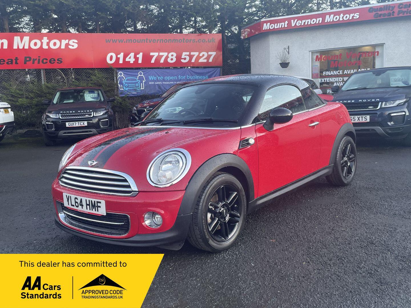 GlasgowDiscover this stylish 2015 MINI Coupe Cooper, a compact car that offers a distinctive driving experience. Powered by a responsive 1.6L petrol engine and meeting Euro 6 emissions standards, this MINI Coupe Cooper is equipped with practical and attractive features. It boasts 16 inch light alloy wheels in a black 6 star twin spoke design, multifunction controls integrated into the steering wheel for convenience, and bright LED front fog lights. Additionally, the exterior mirrors are electrically folding for ease of use, and the interior features a vibrant Colour Line in Rooster Red, adding a personal touch to your drive.This MINI Coupe Cooper is designed to be economical and affordable to run. It achieves an impressive fuel economy of up to 52 miles per gallon, which is excellent for its class. Furthermore, its low CO2 emissions mean it is kinder to the environment, and its position in a low insurance group can help to keep your running costs down. These factors combined indicate that this vehicle offers a more cost effective ownership proposition compared to many other cars of a similar type.