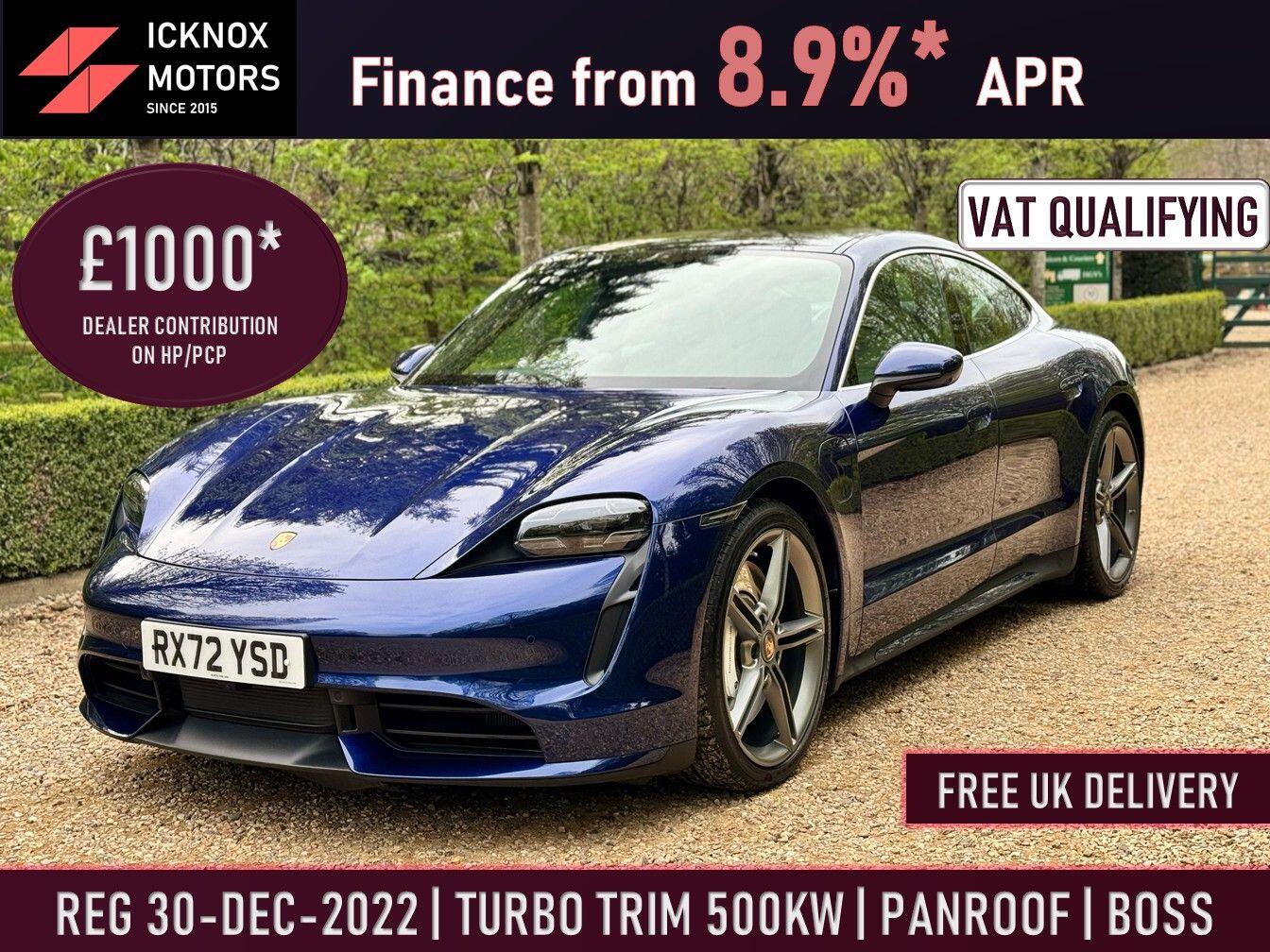 St Albans0 Previous Owners, Highlights For This Porsche Turbo:21 Inch Mission E Design Wheels (3,296)Panoramic Glass Roof (1,137)Boss Premium Sound System complete with 14 high-performance speakers; 5.1 digital signal processing; AudioPilot, Centerpoint, SoundTrue and SurroundStage technologies.Front Seat Ventilation (716)Chrono/Compass dial (416)Power Steering Plus (203)Park Assist Included with Surrounded View (360 CAM) (522)* 1,000 dealer contribution on dealer arranged Business or Personal PCP or HP finance, where the finance amount greater than 50,000 and 500 dealer contribution is available on finance agreements between 25000 & 50,000,Offer applies to this car only. This dealer contribution is refundable to the dealer if the finance account is closed within six payment cycles of the account opening.VAT Qualifying Key Info:First Registered: 30-Dec-202212 Month Brand New MOT with no advisoriesPerformance Plus TurboFull Main Dealership Service History Available - Last Serviced by Porsche Main Dealer.Battery Warranty Until 29-Dec-2030Features:Sport Chrono PackRear Axle Steering Included - Power Steering PlusChrono/Compass dial Heat Pump & Climate Control - Air ConditioningWireless Charging Adaptive Cruise ControlBose Surround SystemComfort Seats in front with Memory PackageNavigation System Front Ventilated Seats with Heating and Rear Heating SeatsContact Icknox Motors via Phone or WhatsApp @ 07359253786WHY BUY FROM US? FCA Regulated & VAT Registered Company Affiliated to the Motor Ombudsman Group Excellent 5-star reviews on Autotrader Check Them Out PCP & HP Finance Options Are Available, With Competitive Interest Rates UK-Wide Car Delivery Available (Nominal Fees) We Accept All Major Credit and Debit Cards Early Morning, Late Evening, and Weekend Viewings Also Available Part-ex Welcome. Competitive Prices Offered Warranty Plans Available 3 to 36 months (Enquire Further) All Our Cars Are HPI Clear HPI Check Certificates Provided Mileages Verified All information Provided