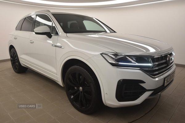 Belfast2 Previous Owners, The Volkswagen TOUAREG 3.0 V6 TDI 4Motion R-Line offers a refined driving experience, combining robust diesel performance with a suite of advanced technologies. With 61,800 miles recorded, this vehicle demonstrates durability and is complemented by its smooth automatic transmission, making it well suited for a variety of driving conditions. Features such as adaptive low beam headlights, rain sensors, and automatic coming and leaving home lighting functions add to both convenience and safety for every journey.The 3.0-litre V6 TDI engine delivers 286 BHP, providing responsive acceleration with a 0-60 mph time of just 6.3 seconds and a maximum speed of 147 mph. Volkswagen's 4Motion all-wheel-drive system ensures excellent traction and handling, supporting confident motoring across a range of road surfaces.A white paint finish is paired with body-coloured door handles, wheel arches, and mirrors, creating a cohesive and modern appearance. Chrome accents on the radiator grille, air intakes, and side windows enhance the exterior, while a gloss black finish on the B pillar and rear diffuser adds a touch of sophistication. The R-Line badging, stainless steel pedals, and soul black headlining further underscore the attention to detail, while LED lighting throughout-including full LED headlights, rear lights, and signature daytime running lights-provides clear illumination and a contemporary look.Interior amenities include a heated, multi-function leather sports steering wheel with gear shift paddles, four-zone climate control, and electrically adjustable, heated, folding mirrors with auto-dimming capability. The 9.2-inch colour touchscreen infotainment system supports Apple CarPlay, Android Auto, and MirrorLink, while navigation, Bluetooth connectivity, and a wireless smartphone charger add to everyday ease. Safety features are comprehensive, with adaptive cruise control, front and rear parking assist with camera, a full suite of airbags, hill descent control, and Volkswagen's electronic safety systems, all contributing to peace of mind