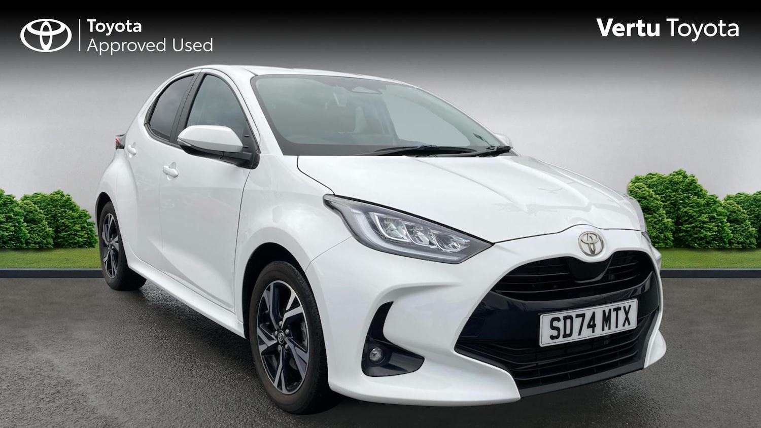 GlasgowInsurance Group 14, 1 Previous Owner, 0, Franchise Approved, Discover this 2024 Toyota Yaris VVT-h Design, a smart choice for those seeking efficiency and modern technology. This Euro 6 compliant model boasts a 1.5L petrol hybrid engine, offering an impressive fuel economy of 69 mpg. Inside, you'll find a comfortable cabin equipped with automatic air conditioning, ensuring a pleasant environment no matter the weather. Stay connected and entertained with smartphone integration, featuring both Apple CarPlay and Android Auto. Navigating tight spaces is made easier with the integrated reversing camera, and for added convenience on longer journeys, adaptive cruise control is included. The distinctive LED front light guide enhances visibility and adds to the Yaris's contemporary look.All our vehicles at Vertu Motors come fully prepared with our peace of mind Main Dealer guarantee. Every vehicle is fully prepared both mechanically and cosmetically up to the highest standard which even includes having any tyre replaced that has less than 3mm tread depth (legal limit is 1.6mm). Every vehicle will have a minimum of 9 months MOT remaining and you will not have to service the vehicle for at least 6 months or 6000 miles. We ensure that you will have a minimum of 2 keys and to give you even further reassurance we also supply you with a 3 months complimentary warranty and a 14-day money back guarantee. Our vehicles also come with a full HPI vehicle check assuring you that your new vehicle will have no registered accident claims reported, or any outstanding finance, it also shows the vehicle has not been imported. In addition to this we also do a full Government VOSA report check to verify the mileage on all cars over 3 years old. This service comes free of charge to all our customers unlike other main dealers who charge you an admin fee for this service. We also offer nationwide delivery on all our vehicles, so call today to arrange a viewing / test drive and let one of our professional sales executives give you the Vertu Motors experience..Air Conditioning, Cruise Control, Alloy Wheels, DAB Radio, Bluetooth, USB, Manufacturer Approved, Apple-Android Play& Rear Camera, Rear privacy glass, Acoustic windscreen glass, Auto windscreen wipers, Front auto power windows with anti jam protection, Rear auto power windows with anti jam protection, Rear wiper, Rain sensor, Variable front intermittent wipers, ABS+EBD+Brake assist, Electronic parking brake, Hill start assist control (HAC), Emergency brake light system (EBS), Vehicle Stability Control (VSC), E-call, Bluetooth connectivity, Voice recognition, Electric power steering, Adaptive cruise control, Reversing camera, Adjustable speed limit with speed warning, Pre-collision system (PCS), Lane trace assist, 2x Master key, Smartphone integration with Apple CarPlay and Android auto, Hybrid energy display, Multi information display switches on steering wheel, Toyota Touch 2 with DAB, Colour binocular inspired displays with digital speedometer
