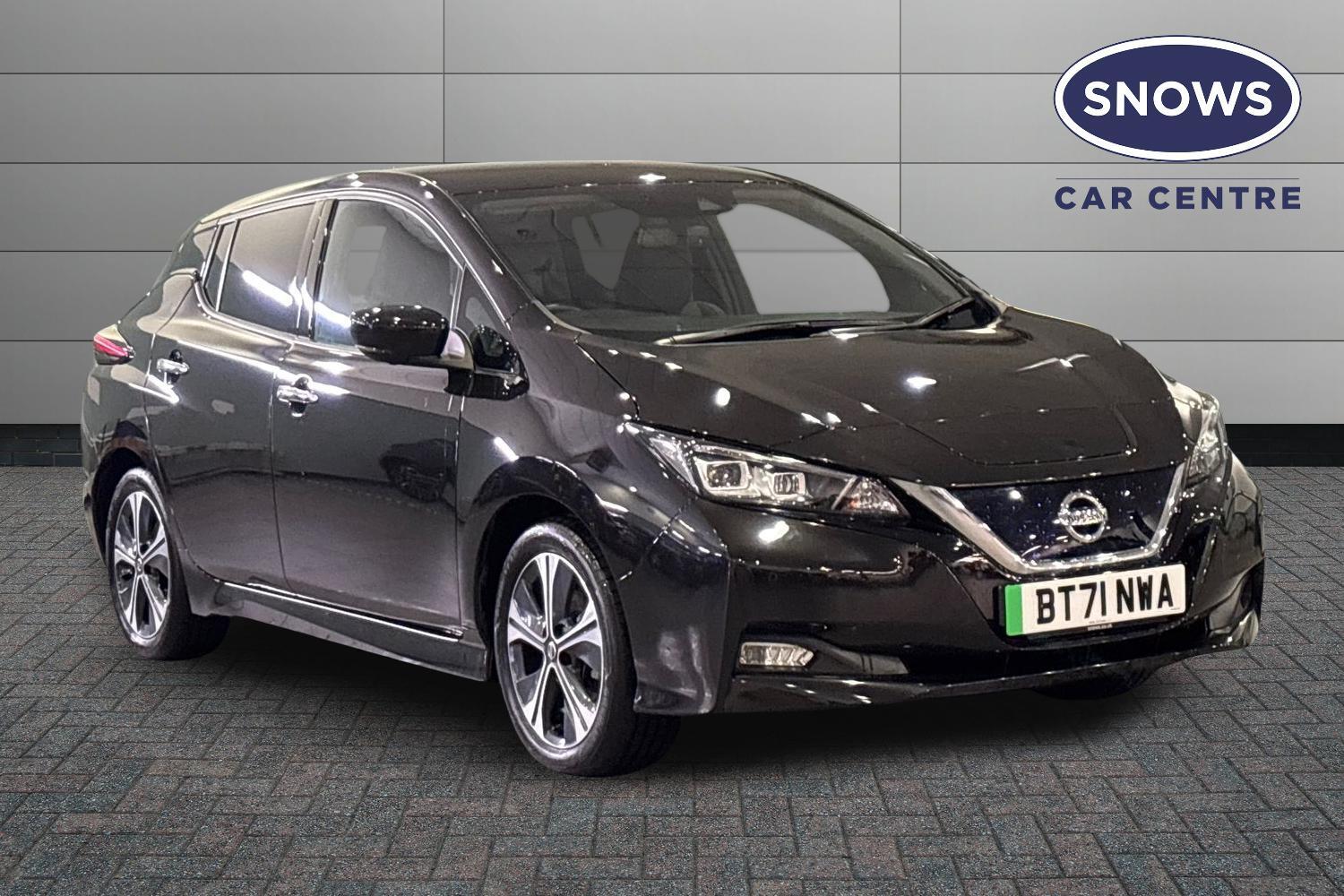 1 Previous Owner, 7" Combimeter, 8" touchscreen navigation and entertainment system, Apple car play/Android Auto, Blind spot intervention, Blind spot warning, E Pedal, eCall emergency call system, Intelligent Cruise control (ICC), Intelligent lane intervention, Lane departure warning system, Nissan connect services with nav, Push button starter, Rear cross traffic alert, Speed limiter, Speed sensitive power steering, Telematics system, Trip computer, Voice control system, 6.6 kw On-board charger, 6.6 kW onboard charger, EVSE charging cable, AM/FM/DAB audio system, Aux-in socket, Bose Premium Audio system+7 speakers, Remote audio control, Two rear USB sockets, USB port, Auto dimming rear view mirror, Automatic activation of hazard warning lights, Automatic rain sensing wipers, Body colour mirror caps, Chrome door handles, Electric front/rear windows, Electrically adjustable and folding door mirrors, Follow me home headlights, Gloss black finish B pillar, High beam assist, Illuminated charge port, Integrated turn signals in mirrors, Intelligent auto headlights, LED signature daytime running lights, LED tail light signature, LED third brake light, Metallic blue rear bumper accent, Rain sensor, Rear privacy glass, Rear side wing doors, Rear wiper, Shark fin antenna, 12V socket, 3 seat bench in 2nd row, 50kW Quick Charger Capacity, 60/40 split folding rear seat, Automatic air conditioning with timer and heater, Front centre console and armrest, Front head restraints, Front seatback pocket, Heat pump, Height adjustable driver seat, Isofix child seat anchor points, Leather steering wheel, Leather/ultra suede upholstery, Manual adjust driver/passenger seats, PTC (Positive Temp Co-efficent) heater, Quick charge port, Rake and reach adjustable steering column, Rear assist grips, Rear head restraints, Rear heater duct, Single front passenger seat, Heat pack - LEAF, LED Pack - Leaf, Pro pilot Pack - Leaf, Tech Pack - Leaf, 3 point front seatbelts with pre-tensioners, 3x3 point rear seatbelts, Curtain airbags, Driver and passenger airbags, Front seatbelt pretensioners + load limiters, Height adjustable front seatbelts, Hill start assist, Intelligent emergency braking with pedestrian recognition, Intelligent trace control, Manual child proof rear door locks, Seatbelt reminder for driver and front passenger, Side airbags, Traction control, Tyre pressure monitoring system, VDC Dynamic Vehicle Control, Deadlock, Immobiliser, Nissan i-key, Remote central locking, Thatcham Cat.1 alarm, 17"