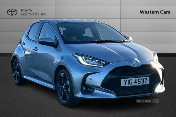 EnniskillenInsurance Group 16, 10.5in HD Toyota Smart Connect Multimedia System with Wireless Smartphone Integration incl Apple Carplay and Connected Cloud Navigation, 12.3in Customisable Digital Combimeter, 17in Alloy Wheels - Black Machined-Face - 5 Spoke, 3-Spoke Leather Steering Wheel, 6 Speakers, ABS - Anti Lock Braking System, Accessory Connector, Acoustic Windscreen Glass, Adaptive Cruise Control - Full Range, Adjustable Speed Limiter - ASL, Air Spats - Front and Rear, Air Ventilation System, Airbags - Curtain SRS Shield, Airbags - Driver and Passenger - Central, Airbags - Driver and Passenger - Front, Alarm and Immobiliser, Ambient Lighting on Front Interior Door Handles, Armrest - Front Central, Assist Grips - Front and Rear, Auto Dimming Rear View Mirror, Automatic Headlights, Automatic High Beam with On-Off Switch, B-Pillar with Black Out and Decal in Resin, Black Interior Door Handles, Bluetooth Connectivity, Body Coloured Door Mirrors, Boot - Luggage Room Light, Boot Underfloor Storage, Bumper and Grille Garnish - Paint, Child Safety Door Locks, Chrome Surround on Air Conditioning Button, Coat Hooks - 2x Rear, Console Box, Cupholders, DAB Digital Radio, Daytime Running Lights - LED, Default - Wheel Caps, Digital Clock, Digital Speedometer, Digital Tachometer, Door Handles - Body Coloured, Doors - Door Pockets, Doors - Lower Back and Back Door Garnish, Driver Attention Alert, Driver and Passenger Front and Side Airbags, Dual-Level Deckboard, Dual-Zone Automatic Air Conditioning, E-Call, Electric Power Steering - EPS, Electronic Parking Brake, Emergency Brake-Light System - EBS, Emergency Driving Stop System, Floor Mats - Rear, Floor Mats with Yaris Logo, Follow Me Home Headlights, Front Fog Lights - LED, Front Grille - Upper - Gloss Black, Front Map Lights, Front Passenger Airbag On-Off Switch, Front Power Windows with Anti-Jam Function, Front USB Type-C Connector, Front USB-C Device Charger, Gloss Black Door Belt Moulding, Glovebox - Slow Opening with Single Compartment, Grey Roof Lining, Grille - Lower Front Grille in Gloss Black and Surround in Dark Chrome, HAC - Hill Start Assist Control, Hard Tonneau Cover, Headrests - Front and Rear, Height Adjustable Driver Seat, Height Adjustable Passenger Seat, Hybrid Energy Display, ISOFIX Seat Fixing - Rear, Intermittent Front and Rear Wipers, LED Front Light Guide, LED Headlights, LED High Level Stop Light, LED Indicators, LED Rear Combination Lights, LED Rear Light Guide, Lane Trace Assist, Leather Gear Shift, Light Blue