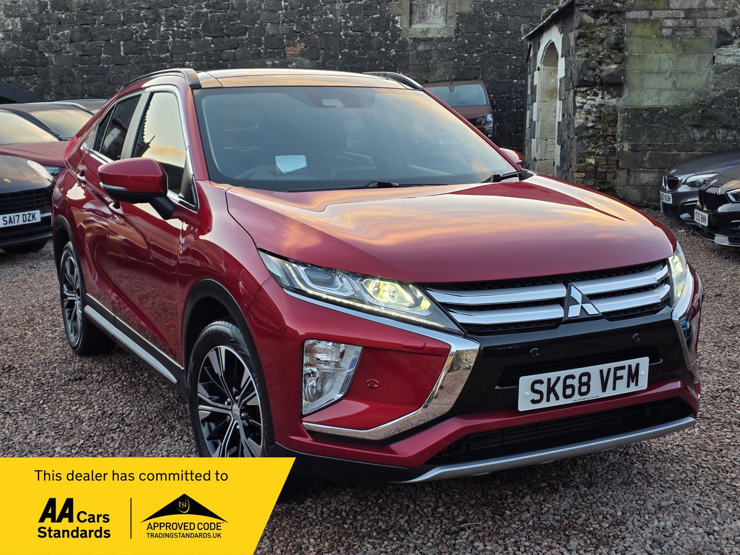 KinglassieInsurance Group 19, 1 Previous Owner, Top of the range spacious Eclipse Cross SUV 2018 MITSUBISHI ECLIPSE CROSS 1.5T 4 £10550 49,200 miles Red Diamond Black leather interior with heated front seats Apple CarPlay and Android Auto Only 2 owners from new Rockford Fosgate premium 9 speaker system LEZ compliant LED headlights, high beam assist, 360 camera, head up display, blind spot monitor, lane change assist, power fold mirrors, front and rear parking sensors, cruise control AA Cars Motor Dealer Warranty included with upgrades available Free 12 months AA Breakdown Cover Finance options available Part exchange welcome Rely Motors Ltd, Bankhead Buildings, Kinglassie, KY5 0UH relymotors.com 01592770834 07427371103 info@relymotors.com Specification includes 18in Alloy Wheels Black Silver, 3 Point Rear Seat Belts x3, 360 Degree Camera, Aerial Shark Fin, Air Conditioning Climate Control Dual, Airbags Front Passenger Deactivation Switch, Alarm Thatcham Cat 1, Android Auto Supported, Apple CarPlay Supported, Armrest Rear Centre, Blind Spot Warning, Bluetooth with Music Streaming, Bottle Holder Front Doors, Chrome Tailgate Handle, Coat Hanger, Cruise Control, DAB Digital Radio, Door Handles Interior Chrome, Door Sashes Black, Door Trim Inserts Leather, Dusk Sensing Headlights, Electric Heated Folding Mirrors, Engine Start Stop Button, Fog Lamps Front and Rear, Footrest Drivers, Forward Collision Mitigation System, Front Twin USB Port, Gear Knob Black Leather, Gloss Black Front Bumper Centre, Handbrake Leather, Hands Free Audio with Voice Control, Head Up Display, Headlights Automatic High Beam, Headlights LED with Auto Levelling, Height Adjustable Front Headrests, Height Adjustable Rear Headrests, Interior Lamp Front and Rear, Keyless Operation System, LED Interior Illumination, Lane Change Assist System, Lane Departure Warning System, Luggage Area Lamp, Map Reading Lights Front, Mitsubishi Active Stability and Traction Control, Multi Information Colour LCD, Parking Sensors Front and Rear, Power Panoramic Sunroof, Privacy Glass Side and Rear Window, RISE Reinforced Impact Safety Evolution Body Safety System, Rear Cross Traffic Alert, Rockford Fosgate Premium Speaker System, Roof Rails Black, Seatbelt Warning Lamp, Seatbelts Pre Tensioners Front, Seats 60 40 Split Rear, Seats Drivers Electric 4 Way Adjustment, Seats Heated Front, Silver Front Skid Plate, Silver Rear Skid Plate, Silver Side Sill