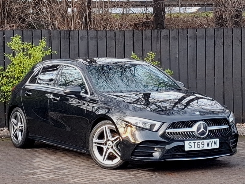 GrangemouthInsurance Group 23, AMG front, rear apron and side skirts, LED high performance headlamps with integrated LED daytime running lights, Headlamp assist automatic headlamp activation, Exhaust system - Twin trapezoidal tailpipes in polished stainless steel, Privacy glass, Rain sensor windscreen wipers, MBUX multimedia system with DAB digital radio and touchpad including satellite navigation, Dual bluetooth interface, 2 USB ports (type C), 180 degree rear view camera with parking guidelines, 7" colour screen in instrument panel, Cruise control + speed limiter, 3 Spoke flat bottom leather multi function steering wheel with perforated leather in grip area, 40:20:40 split folding rear seats, Artico man-made leather/Microfibre Dinamica upholstery with red contrast stitching, Two zone thermotronic luxury automatic climate control, ISOFIX Child seat top tethers and anchor fixings