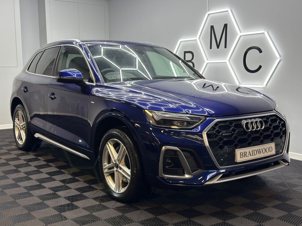 LivingstonInsurance Group 43, 1 Previous Owner, *** Recently Arrived, More Images to Follow*** Finished in Navara Blue with Black Half Leather interior. This car comes supplied 2 Keys, and the remaining balance of manufacturers warranty. key Features include, Climate Control, Cruise Control, Heated Seats, LED Headlights, LED Daytime Running Lights, Navigation, Reverse Camera, Front and Rear Parking Aid, Privacy Glass, Bluetooth, Bluetooth Audio, DAB, Electric Windows, Electric mirrors, Multi Function Steering Wheel, Trip Computer All Cars at Braidwood Motor Company are hand picked and are given a full inspection at our workshop before they are available for sale. Every car comes with a minimum 6 months executive warranty. Low rate finance packages are available. For More Information please call on 01506 444422 ***NATIONWIDE DELIVERY AVAILABLE***.19in Alloy Wheels - 5-Twin-Spoke Star Design - Gloss Turned Finish, 2 USB Charging Ports, 3 Pin 10amp Domestic Charging Cable, 3-Spoke Multi-Function Leather Steering Wheel with Grips in Perforated Leather and S Badging, 6-Airbag System, Air Vents - Inserts and Centre Console in Gloss Black, Aluminium Roof Rails, Anti Theft Locking Wheel Bolts, Anti-Theft Alarm, Attention and Drowsiness Assist, Audi Connect Navigation and Infotainment Services Plus - 3 Year Trial, Audi Connect Safety and Service, Audi Connect with Amazon Alexa Integration, Audi Drive Select, Audi Pre-Sense City, Audi Virtual Cockpit - 12.3in Screen with Specific Display for Plug-In Hybrids, Audi Wireless Smartphone Interface, Auto Dimming and Frameless Rear View Mirror, Automatic Headlight and Windscreen Wiper Activation, Automatic Start-Stop with Coasting Functionality and Efficiency Programme, Bluetooth Interface, Body Coloured Door Mirrors, Camera Based Traffic Sign Recognition, Chrome-Plated Exhaust Trim, Cloth Headlining in Black, Comfort Front Centre Armrest - Height Adjustability and Slide Function, Contrast Stitching on Seats - Steering Wheel and Gear Lever Gaiter, Cruise Control System with Speed Limiter, DAB Digital Radio, Deluxe 3-Zone Electronic Climate Control, Door Mirrors - Electrically Folding and Heated and Auto Dimming, Door Sills in Selenite Silver, Dynamic Suspension, Electric Child Locks for Rear Doors, Electric Windows - Front, Electromechanical Parking Brake, Electromechanical Power Steering, ESC - Electronic Stabilisation Control inc ABS - ASR and EDL, First Aid Kit and Warning Triangle and Safety Vests, Front Air Inlet Surrounds in Aluminium, Front and Rear Floor Mats, Front and Rear Parking Sensor with Acoustic Warning, Front Radiator Grille in Honeycomb Design, Gear Lever in Black Leather, Heated Front Seats, High Gloss Package, Hill Descent Control, Hill Hold Assist, Illuminated Door Sill Trims with S Logo - Front, Industrial Connector CEE 32A - 230V for the e-tron Charging System, Inlays - Matt Brushed Aluminium, ISOFIX Child Seat Mounting for Front Passenger and Outer Rear Seats - including Top Tether Attachment for the Outer Rear Seats, Lane Departure Warning, LED Headlights with LED Tail Lights, LED Interior Lighting Pack, Loading Edge Protection in Stainless Steel, Lower Bumper Painted in Contrast Manhattan Grey, Luggage Compartment Cover, Manual Seat Adjustment with 4-Way Electric Lumbar Support, MMI Navigation Plus with 10.1in Touchscreen, Multi Collision