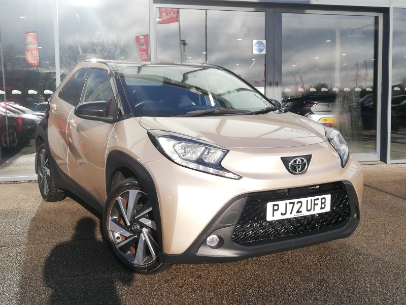 Newcastle Under LymeInsurance Group 6, Toyota safety sense pack - Aygo X, Toyota touch 2 multimedia System with 8" Screen display, Smart phone integration with Apple car play/Android Auto, Adaptive cruise control, Speed limiter, Steering wheel audio controls, 4.2" TFT colour screen, Bluetooth connectivity, Driver attention alert system, Intersection turn assist, Pre collision system with emergency steering assist, Reversing camera with static guide lines, Start and stop, Vehicle Stability Control (VSC), DAB digital audio broadcast, Metallic Bi-tone paint, Auto headlights, Auto wipers, Rain sensor, Privacy glass, Electric heated door mirrors, Follow me home headlights, 50/50 split folding rear seat, Adhesive roof headlining, Black roof lining, Fabric upholstery, ISOFIX child restraint system on rear seats, Voice recognition switch on steering wheel, Anti lock braking system + Electronic brake force distribution, Hill start assist control (HAC), LED daytime running lights
