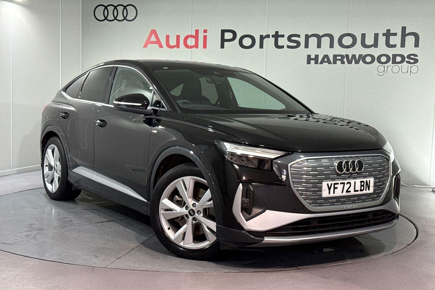 Insurance Group 31, 0 Previous Owners, Franchise Approved, COMFORT & SOUND PACK ( AUDI PARKING SYSTEM PLUS, ADAPTIVE CRUISE WITH LIMITER, SONOS PREMUIM SOUND SYSTEM, ASSISTANCE PACK PLUS ) TECHNOLOGY PACK LIGHT ( AUGMENTED REALITY HEAD UP DISPLAY, AUDI VIRTUAL COCKPIT PLUS, MMI PRO, 12 VOLT & 2 X USB - C IN REAR ) PARK ASSIST PLUS, AMBIENT LIGHTING PACK, SPORT SUSPENSION, SATELLITE NAVIGATION, REAR PARKING CAMERA, MULTI FUNCTION STEERING WHEEL, HILL HOLD ASSIST, CRUISE CONTROL, LANE DEPARTURE WARNING, APPLE CARPLAY, ANDROID AUTO, DAB RADIO, TINTED WINDOWS - PRIVACY GLASS, FRONT AND REAR PARKING SENSORS, SPLIT FOLDING REAR SEATS, LIGHT & RAIN SENSOR, AUTO DIMMING REAR VIEW MIRROR, SELECTABLE DRIVING MODES, KEYLESS ENTRY WITH PUSH BUTTON START, MYTHOS BLACK METALLIC WITH LEATHER/FABRIC UPHOLSTERY, 20'' 5 Y SPOKE ALLOY WHEELS, DUAL ZONE CLIMATE CONTROL, HEATED FRONT SEATS WITH LUMBAR SUPPORT, LED HEADLIGHTS WITH DYNAMIC REAR INDICATORS, VOICE ACTIVATED CONTROLS AND MUCH MORE.All Audi Approved used cars are offered with a 12-month warranty and roadside assistance.Portsmouth Audi are delighted to offer this Audi Q4 in Mythos Black over Fabric/ Leather and has completed just 19981 miles., We are proud to be part of the Harwoods group, a family run business established in 1931. With four Approved Audi retailers within our group, we have access to over 400 vehicles. If this isn't the right car for you, please contact us and we will find it. Our group stock has spec to include Sunroof, Leather, Heated Seats, Apple Car Play, Heated Steering Wheel, Reverse Camera, Rear Entertainment, Towbar, 360-degree camera, Comfort & Sound Pack, Tech Pack, Panoramic Sun Roof, Tow Bar, Black Pack, Air Suspension, Apple Carplay, Adaptive Cruise, Massage Seats, Refrigerator, AWD, Technology Pack, Head up Display, Vorsprung, Technik, Black Edition, S-Line, S Line, Edition 1, TFSI, Quattro, Sportback, LWB.