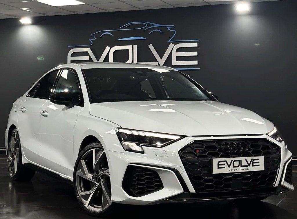 Newport1 Previous Owner, On Offer is a Great Example Audi S3 Quattro Saloon in Ibis White with 10,000 Miles Benefiting from a New Service Before Point of Sale Specification to Include: 19" Rotary Alloys Black S Brake Callipers Parking Sensors Automatic headlights Full Black Leather Interior with Quilted Seats Heated Front Seats Satellite Navigation Virtual Dash Multifunction Steering Wheel DAB Radio Bluetooth Connectivity .Fine Nappa Leather - S Embossed - Front Sports Seats - Black, Ibis White, 19in Alloy Wheels - 5-Double-Spoke, 12v Socket and Storage Compartment in Front Centre Console, 19in Alloy Wheels - 5-Y-Arm Structure Design in Matt Grey - Diamond-Turned, 2 USB-C Ports with Charge and Data Functions, 4-Way Lumbar Support for Front Seats, Airbags - Driver and Front Passenger with Passenger Airbag Deactivation, Aluminium Interior Elements, Anti Theft Locking Wheel Bolts, Anti-Theft Alarm, Audi Beam, Audi Connect Navigation and Infotainment Services Plus (3 Year Subscription From New), Audi Drive Select, Audi Pre-Sense Front with Pedestrian and Cyclist Recognition, Audi Smartphone Interface, Audi Virtual Cockpit, Auto Dimming and Frameless Rear View Mirror, Black Styling Pack, Bluetooth Interface, Brake Calipers Painted in Glossy Black, Camera Based Traffic Sign Recognition, Cloth Headlining in Black, Collision Avoidance Assistant, Cruise Control, DAB Digital Radio, Dual-Branch Oval Twin Tailpipes in Chrome-Plated Finish, Dual-Zone Electronic Climate Control, ESC - Electronic Stabilisation Control inc ABS - ASR and EDL, Electric Windows - Front, Electronically Operated Child Locks, Emergency Call - E-Call, Extended Ambient Lighting Pack, Exterior Mirrors - Electrically Adjustable - Heated and Folding - Automatically Dimming on Both Sides with Built-In LED Side Indicators - Including Automatic Kerb-Side Function for the Passenger-Side, First Aid Kit and Warning Triangle and 2 Safety Vests, Flat-Bottomed 3-Spoke Leather Multi-Function Sports Steering Wheel with Gear-Shift Paddles, Front Side Airbags with Head Airbags and Interaction Airbag, Front Sports Seats, Front and Rear Centre Armrest in Artificial Leather, Front and Rear Floor Mats, Headlights Washers, Hill Hold Assist, I-Size and Top Tether Child Seat Mounting for the Outer Rear Seats, Illuminated Door Sill Trims with Aluminium Inserts and S Logo, Inlays - Dark Spectrum Aluminium, LED Headlights with LED Rear Lights and Dynamic Rear Indicators, LED Interior Light Package, Lane Departure Warning, Light and Rain Sensor, Luggage Compartment Floor Covering, MMI Navigation Plus with High Resolution 10.1in Touchscreen Colour Display, Manual Boot Compartment Lid, Pedals in Stainless Steel and Footrest in Black, Privacy Glass - Dark-Tinted Rear Window - Rear Door and Side Window., Progressive Steering, Remote Central Locking, S Sport Suspension, S3 Design Body Styling, Seat Belt Monitoring, Split-Folding Rear Seat Bench -