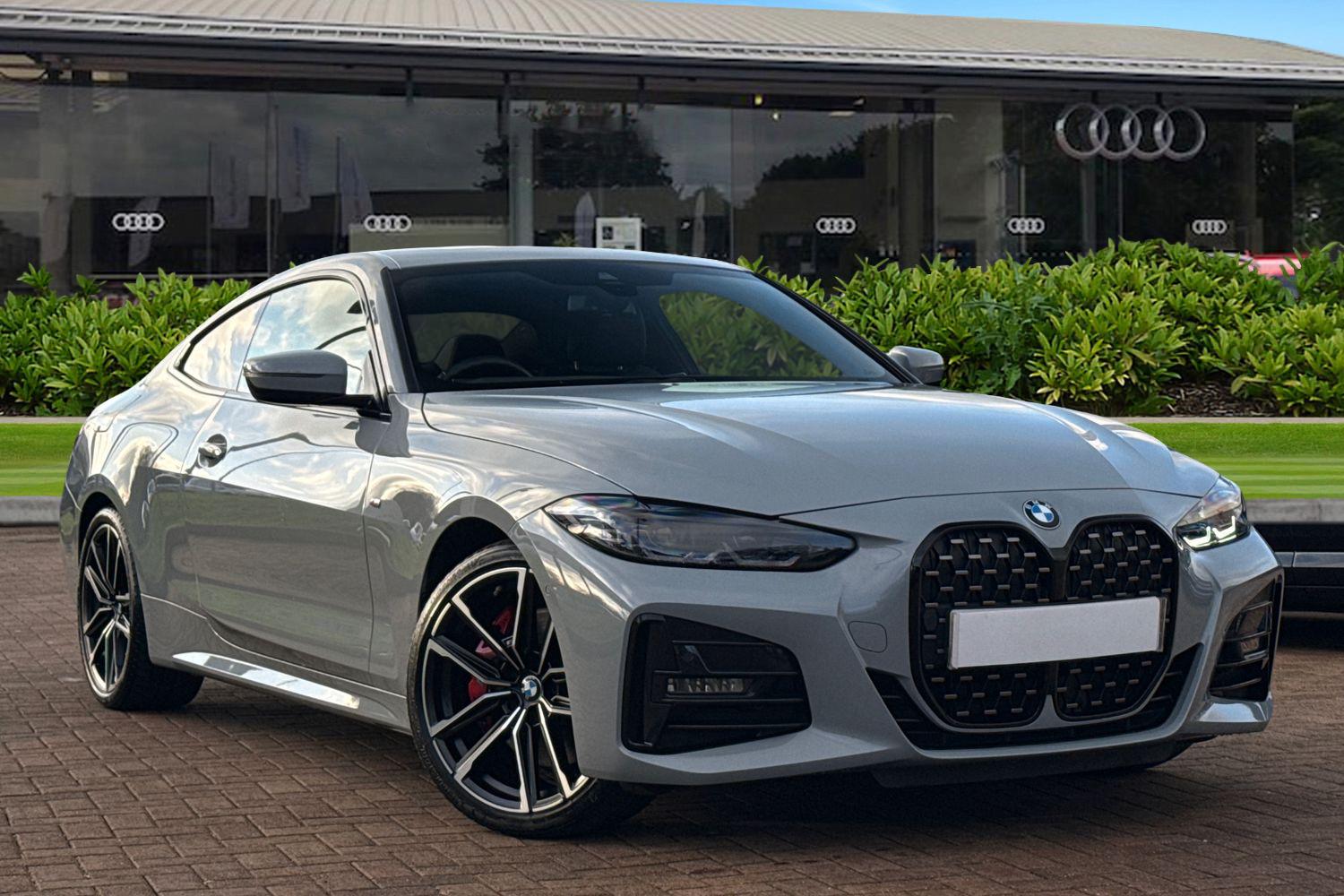 StaffordInsurance Group 30, 0 Previous Owners, Turn heads with this BMW 4 Series Coupé, a car that blends sharp design, dynamic performance, and premium comfort into one unmistakable package. Finished in striking Brooklyn Grey, its sleek coupé silhouette is enhanced by red M Sport brake calipers, immediately signalling performance and presence. Under the bonnet sits a responsive 2.0-litre petrol engine, paired with a smooth automatic transmission that delivers confident acceleration and effortless cruising. True to BMWs reputation, the driving experience is both engaging and refined, making every journey feel special. Inside, the cabin is designed for both driver focus and everyday comfort. Enjoy immersive audio from the Harman Kardon sound system, while seamless connectivity is provided through Apple CarPlay and Android Auto, keeping navigation, music, and calls easily accessible. Practical features complete the package, including front and rear parking sensors for stress-free manoeuvring and heated seats that add an extra layer of comfort in colder conditions. This BMW 4 Series Coupé is a compelling combination of style, technology, and driving pleasure. This vehicle is compliant with Clean Air Zone (CAZ) or Ultra Low Emission Zone (ULEZ) regulations, meaning it produces low emissions and helps to improve air quality in our cities. We offer flexible finance packages* Terms & conditions apply. For further information or a finance quote please call our sales team.