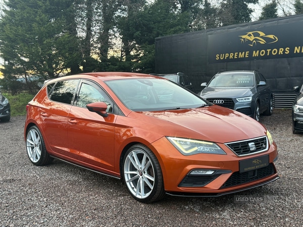 Omagh1 Previous Owner, 2018 Seat Leon FR Kitted Technology Pack - 2018- 113k Warranted Miles- Will come with a full years MOT- Service History- Will receive a full Check over and a ServiceBrand New 19" Pretoria alloys and tyres package (£690 optional)Very high Spec Car Inc:- Kitted- Ambient Lighting - Sat Nav - Multimedia System- Front and Rear Parking Sensors- LED Headlights- Auto Light Auto WipersAll our Cars are presented to a very high Standard and fully checked over before they leave our forecourtAll our Vehicles include a 110 multipoint check and a service and also a Full Professional Valet!We offer a Free 6-month Auto Guard warranty on all of our Vehicles in Stock with an Option to extend!Part Exchange welcome keen prices offered!Full Walkaround Video available on RequestCall or Whatsapp on 07543814076£7750