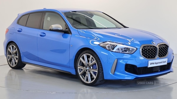 This 2022 BMW 1 Series M135i is a superb example. It boasts a powerful 2.0 litre petrol engine paired with a four wheel drive drivetrain, ensuring excellent traction and performance. This Euro 6 compliant model also features an electric bootlid for added convenience and a generous boot space, perfect for all your needs.Experience exhilarating performance with a rapid 0-62mph acceleration time of just 4.8 seconds, showcasing its dynamic capabilities. The M135i Pro Pack enhances the driving experience further, including a premium branded sound system to enjoy your favourite music. Adaptive LED headlights provide superior visibility in all conditions, making this BMW 1 Series M135i a truly compelling choice. EU6 RDE II exhaust emissions standard, M Sport Brakes with Blue Calipers, Sport Automatic Transmission with Gearsh, Tyre Repair Kit, M Sport Steering, Multifunction Controls on Steering Wheel, Alarm System, Electric Folding Door Mirrors, M Sport Seat Belts, Illuminated Boston Interior Trim, Ext. mirrors- folding with anti-dazzle, Rear-view Mirror with Auto dimming, ISOFIX Child Seat System, Extended storage, Heated front seats, Active Guard Plus, Park Distance Control front and rear, Automatic Air Conditioning, Cruise Control, Additional Interior Lighting, BMW TeleServices, BMW Emergency Call, BMW Online Services, Connected Package Pro (limited duration), Deletion of iDrive touch function, Live Cockpit Professional, DAB Radio, M Sport Suspension, Front M Sport Seats, M Sport Exterior Styling, M Sport Spoiler, High-gloss Shadowline Exterior Trim, Anthracite Headlining, Active Pedestrian Safety, Special Steering Bluetooth Wifi, 19'' 557M V-spoke style alloy wheels Bico, Electric Bootlid, Sun Protection Glass, High-Beam Assistant, Adaptive LED Headlights, Harman/Kardon Surround Sound Audio, M135i Pro Pack. Blue 5 seats. BMW Approved Used Car