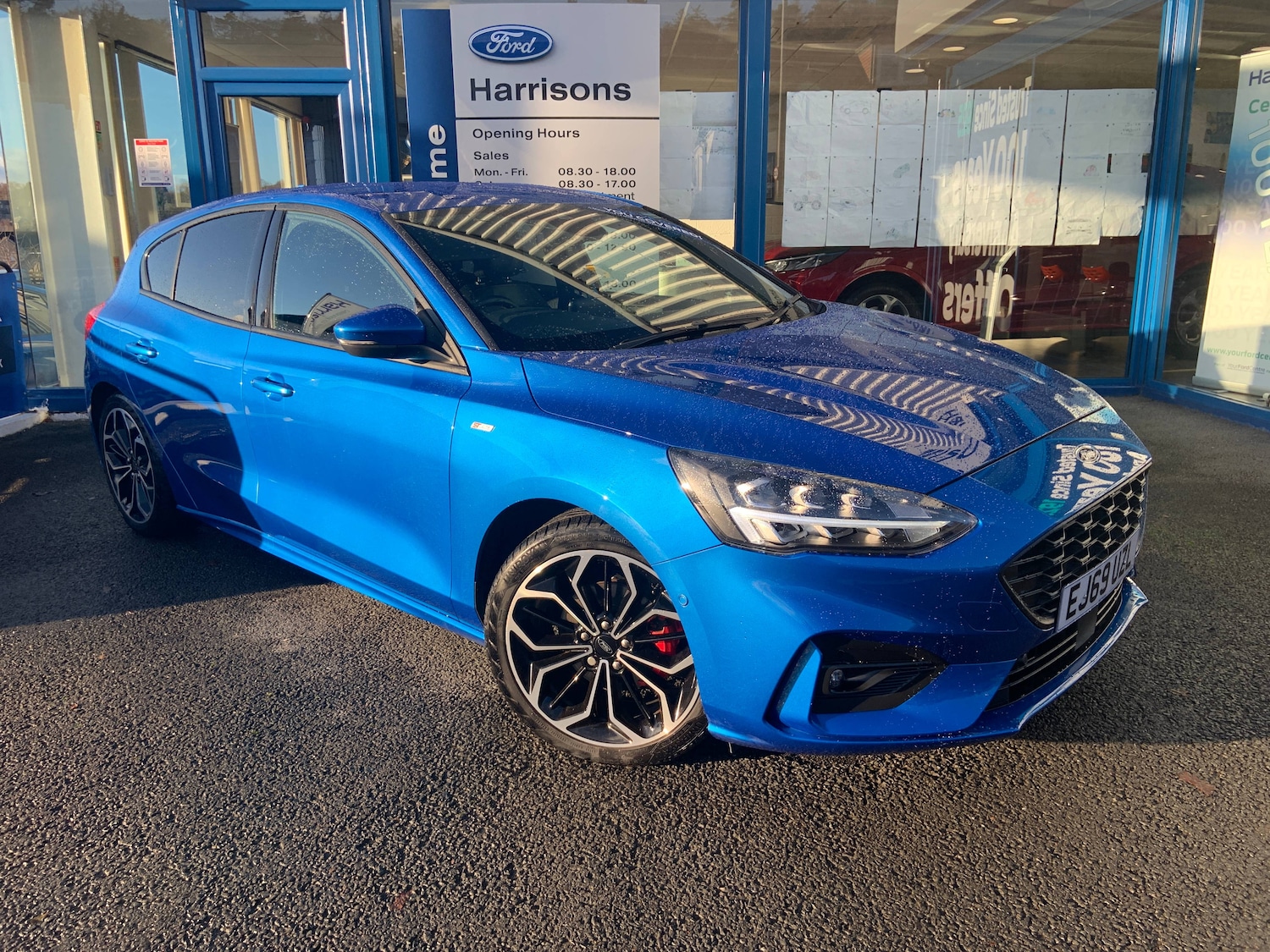 PeeblesInsurance Group 17, 1 Previous Owner, ABS+Electronic Brake force Distribution, Auto hold function, Driver airbag, Electronic parking brake, Electronic stability control, Front and rear seatbelt reminder, Front inertia reel height adjustable seatbelts with pre-tensioners, Front passenger airbag, Front side airbags, Hill start assist, Passenger airbag deactivate switch, Post collision braking, Pre collision assist with autonomous emergency braking and pedestrian/cyclist detection, Red brake calipers, Side curtain airbags, Three rear inertia reel lap/diagonal seatbelts, Tyre pressure monitoring system, Bluetooth system, Cruise control + speed limiter, Digital clock, Easy fuel capless refuelling system, Eco mode, Ford pass connect, Ford SYNC 3 nav system with DAB radio, 8 inch colour touch screen, voice control, app link, Apple car play/Android auto and 4.2 inch TFT coloured cluster, Front and rear parking sensors, Intelligent speed assist, Lane keeping aid with lane departure warning, PAS, Selectable drive mode, Trip computer, 'Quickclear' heated windscreen/heated washer jets, Auto dimming rear view mirror, Auto headlamps (on/off), Automatic rain sensing wipers, Body colour large rear spoiler, Body colour side skirt, Body coloured bumpers, Body coloured door handles, Body coloured electrically operated and heated door mirrors with side indicators, Electrically operated front and rear windows with one touch opening and closing, Front variable intermittent wipers with electric wash, Halogen reflector headlamps, Heated rear window, LED daytime running lamp, LED front fog lamps with cornering function, Polished twin tailpipe, Power folding door mirrors with puddle lights, Rear privacy glass, Solid paint, ST-Line upper and lower grille with full body styling kit and wing badges, Tailgate wash/wipe, Unique door and instrument panel inserts, 3 spoke flat bottomed leather steering wheel with red stitching, 6 way power adjustable driver seat, 60/40 split back and cushion rear seats with 2 height adjustable headrests, Alloy finish pedals, Aluminium gear knob, Centre console with armrest, Dark headliner, Dual zone electronic air temperature control, Front and rear floor mats with red stitching, Front passenger seat manual height and lumbar adjust, Heated front seats, Height adjustable front headrests, Isofix child seat preparation, Part leather upholstery with red stitching, Reach + rake adjustable steering column, Rear centre headrest, Soft console knee pads with red stitching, Sports tuned suspension,