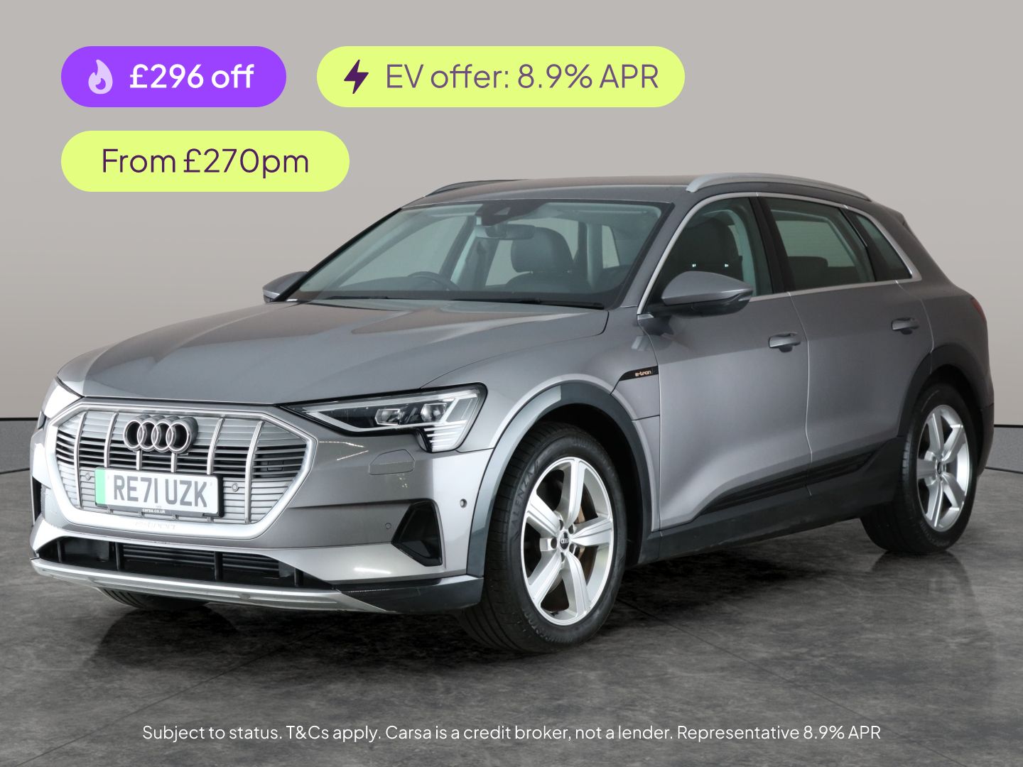 Towcester0 Previous Owners, Experience electric driving in the Audi e-tron SUV, finished in stylish grey. Enjoy premium comfort with heated leather seats, driver memory settings, and electric seat adjustment. Stay entertained with the upgraded sound system, MMI Navigation Plus, and seamless Apple CarPlay. Confident driving comes with adjustable suspension, LED headlights for excellent visibility, and a reversing camera for easy parking. Lane Departure Warning and cruise control make every journey relaxing and safe. Discover the future of luxury driving today. 1 service recorded, last serviced on 29/11/2025 at 42,398 miles. MOT to 25/11/2026. Visit our website for service history, online valuation, full vehicle specification plus multiple images. Certain features listed may be available via subscription packages at extra costs, please consult with Audi for details. This vehicle is VAT qualifying. Any feature/option specified here is from 3rd party data. We cannot guarantee the accuracy of any specification supplied by a 3rd party. We recommend that you physically check the specification of the vehicle on site prior to purchase. This information does not form part of the buying contract. Terms & Conditions apply. We have over 2,000 cars available from our 10 national branches, check our website to see all our stock. Our Trustpilot rating is 4.4/5 with over 9,000 reviews.