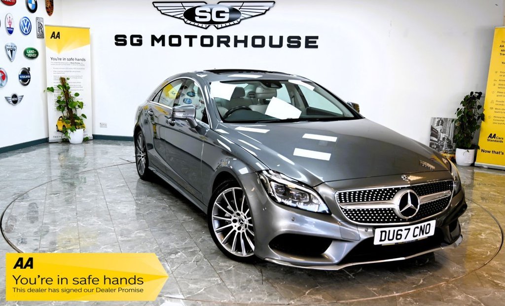 HoddesdonHUGE SPEC - MERCEDES CLS 3.0 CLS350d V6 AMG LINE (PREMIUM PLUS) / ULEZ SERVICE HISTORY + PANORAMIC ROOF (TILT & SLIDE) + REVERSING CAMERA + APPLE CARPLAY + SATELLITE NAVIGATION + FULL LEATHER INTERIOR + HEATED SEATS + ELECTRIC MEMORY SEATS + FRONT & REAR PARKING AID + CRUISE CONTROL + AUTOMATIC GEARBOX WITH PADDLE SHIFT + STEERING CONTROLS + MERCEDES MULTIMEDIA SCREEN / APPLE CARPLAY / BLUETOOTH / BT AUDIO / DAB RADIO / USB + ELECTRIC PARKING BRAKE + ECO FRIENDLY + START/STOP TECHNOLOGY + AUTO LIGHTS + ELECTRIC STEERING WHEEL + ALLOY WHEELS + ALL ELECTRIC WINDOWS + ELECTRIC FOLDING DOOR MIRRORS + REAR HEATED SCREEN FRESH SERVICE + 12 MONTHS MOT CHECKED & INSPECTED FREE 6 MONTHS NATIONWIDE WARRANTY (ALL MECHANICAL & ELECTRICAL - PARTS AND LABOUR INCLUDED) +++ FREE 12 MONTHS AA BREAKDOWN COVER 0% DEPOSIT FINANCE AVAILABLE ALL HPI CLEAR +++ ANY P/X WELCOME. Road Tax Opt, We accept all major CREDIT & DEBIT Cards, 5 Days Drive Away Insurance OPTIONAL, Located 21 High Street, Hoddesdon, EN11 8SX RESERVE ANY CAR FOR ONLY £100 - DEPOSIT FULLY REFUNDABLE SUBJECT TO VIEWING .19in Alloy Wheels - AMG Multi-Spoke Design - Painted Titanium Grey, ABS - Anti-Lock Braking System with BAS - Brake Assist, Active Parking Assist including PARKTRONIC, Adaptive Brake Lights, Adaptive Brake System with HOLD Function - Hill Start Assist - Brake Drying System and Flashing Brake Lights, Alarm System with Immobiliser and Interior Protection, Ambient Lighting in Dashboard and Door Trim in Three Colours - Solar Amber - Polar Ice Blue and Neutral White, AMG Bodystyling - Front and Rear Apron and Side Skirts, ATTENTION Assist, Automatic Child Seat Recognition Sensor, Bluetooth Interface for Hands-Free Telephone, Brake Calipers with Mercedes-Benz Lettering, Brake Pad Wear Indicator, Central Locking with Interior Switch - Automatic Locking and Crash Sensor with Emergency Opening Function, Centre Armrest - Front and Rear with Storage Compartment, Childproof Locks - Manually Operated for Rear Doors and Electrically Operated for Rear Power Windows, Collision Prevention Assist Plus, COMAND Online System, Cruise Control with SPEEDTRONIC Variable Speed Limiter, Cup Holders - Front x2 and Rear x2, DAB Digital Radio Tuner, Direct Control - Sport-tuned Suspension, Direct Steer Speed-Sensitive Power Steering, Door Pockets Front and Rear-Map Pockets on Rear of Front Seat Backrests, Door Sill Panels with Stainless Steel Inlays - Front with Mercedes-Benz Lettering, Dual-Stage Airbags - Driver and Front Passenger - Sidebags in Front Seats - Driver Kneebag - Pelvis Bag and Windowbags for Driver - Front Passenger and Rear Passengers, Electric Windows - 4 - With One-Touch Opening and Closing - including Obstruction Sensors, ESP - Electronic Stability Programme with ASR - Acceleration Skid Control, Exhaust System - Visible Twin-Pipe Integrated into Rear Bumper, First Aid Kit and Warning Triangle, Floor Mats - Black with AMG Lettering, Front Seats - Partial Electric Height and Back Adjustment, Full LED Tail Lights, Glove Compartment - Illuminated - Ventilated and Lockable, Headlights - Multibeam LED Intelligent Light System, Heated Front Seats, Heated Windscreen Washer System, Instrument Cluster with Two Tube-design Round Dials and 4.3in TFT Multi-function Colour Display with Trip Computer, Integrated Analogue Clock in Instrument Panel, Interior Central Locking Switch with Crash Sensor, Interior Door Handles - Illuminated in Chrome, Interior Lighting - Activated Automatically at Unlocking, Interior Lighting - Rear Reading Light, ISOFIX Child Seat Attachment Points with
