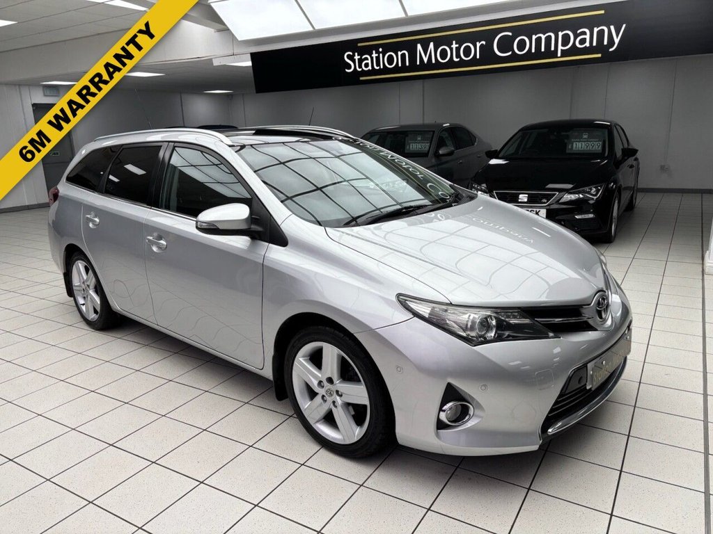 Insurance Group 14, 2 Previous Owners, Station Motor Company proudly present our 2014 14 registration Toyota Auris 1.6 Excel Touring sports, we supply this vehicle with 12 months mot, 6 months warranty and a documented service. This vehicle has full Toyota service history and 2 keys. Features include power fold mirrors, reverse camera, heated seats, cruise control, front and rear parking sensors, dab digital radio, aux, usb, apple car play, blue tooth, climate control, a/con, park assist, full panoramic sunroof..17in Alloy Wheels, ABS - Anti Lock Braking System, Airbags - Curtain Front and Rear, Airbags - Driver, Airbags - Driver Knee, Airbags - Front Passenger, Airbags - Front Side, Auto Dimming Rear View Mirror, BAS - Brake Assist System, Bluetooth Connectivity, Body Coloured Door Mirrors, Comfort Pack, Cruise Control with Speed Limiter, DAB Digital Radio, Door Mirrors - Electrically Heated and Retractable, Driver Lumbar Support, Dual Zone Climate Control, Dusk Sensor, EBD - Electronic Brakeforce Distribution, Electric Windows - Front and Rear, Electric and Heated Door Mirrors, Follow Me Home Headlights, Front Fog Lights, HAC - Hill Start Assist Control, Multimedia Connectivity, Parking Sensors - Front, Parking Sensors - Rear, Power Steering, Radio and CD Player with MP3 and WMA, Rain Sensing Wipers, Rear Parking Camera, Rear Privacy Glass, Remote Central Locking, Roof Rails, Seats - Heated Front, Smart Entry and Smart Start System, Speakers x6, Steering Wheel - Leather, Toyota Touch, Traction Control - TRC, Tyre Repair Kit, USB and Aux In, VSC - Vehicle Stability Control