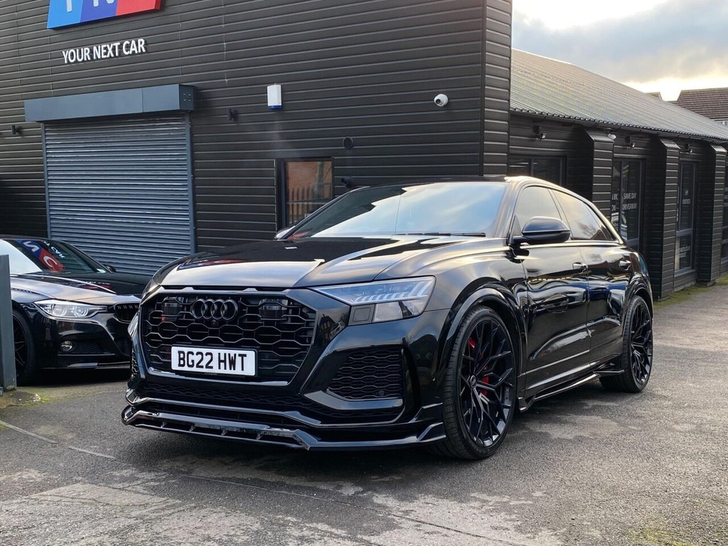 Insurance Group 50, 1 Previous Owner, This 2022 Audi RSQ8 TFSI V8 Vorsprung offers an exceptional blend of performance and luxury. As a Euro 6 compliant model, this four wheel drive vehicle is powered by a robust 4.0 litre petrol engine, delivering exhilarating acceleration from 0 to 62 miles per hour in just 3.8 seconds. The Vorsprung trim level ensures a wealth of advanced technology, including a Bluetooth interface for seamless connectivity, a rear view camera with parking assistance, and the comprehensive Parking System Plus with a 360 degree display, featuring front, rear, and side sensors. Additionally, the City Assist Pack with Blind Spot Assistance and automatic headlights activated by the light and rain sensor enhance both safety and convenience. Beyond its impressive performance figures, this Audi RSQ8 boasts a substantial boot space, making it a practical choice for families and adventurers alike. Its towing weight of 3500 kg further underscores its versatility, allowing you to transport trailers or caravans with ease. These features collectively demonstrate how this RSQ8 surpasses other vehicles in its class, offering a superior driving experience that combines potent power with intelligent design and ample utility..2 USB-C Ports with Charging Functionality in the Rear, 23in Alloy Wheels - 5-Y-Spoke Rotor Design - Gloss Anthracite Black with Diamond Finish, 4-Way Lumbar Support for Front Seats, 4-Zone Automatic Air Conditioning, AMI - Audi Music Interface, Adaptive Windscreen Wipers with Integrated Washer Jets, Advanced Key, Air Quality Pack, All-Wheel Steering, Anti-Theft Alarm with Tow-Away Protection, Anti-Theft Wheel Bolts and Wheel Loosening Warning, Audi Beam, Audi Connect Safety and Service - e-call, Audi Connect with Amazon Alexa Integration, Audi HD Matrix LED Headlights in RS Specific Design with Dynamic Front and Rear Indicators, Audi Music Interface in the Rear, Audi Smartphone Interface, Audi Virtual Cockpit - 12.3in High Resolution LCD Display, Auto Dimming and Frameless Rear View Mirror, City Assist Pack, Comfort Front Centre Armrest, Comfort and Sound Package, DAB Digital Radio, Door Mirrors - Electrically Adjustable - Heated - Folding - Automatically Dimming with Memory Function and Integrated LED Indicators with Kerb View Function for Passenger Side, Double Sun Visor, Driver - Front Passenger - Front Side and Curtain Airbag System, Driver and Front Passenger Memory Function for the Electrically Adjustable Front Seats, ESC - Electronic Stabilisation Control inc ABS - ASR and EDL, Electric Sunblinds for the Rear Side Windows and Manual Sunblind for the Rear Window, Electric Windows - Front, Electromechanical Active Roll Stabilisation, Electromechanical Parking Brake, Electromechanical Power Steering, Extended LED Interior Lighting Package - Multi-Coloured, Exterior Audi Rings and RS Q8 Logos with Gloss Black Finish, First Aid Kit and Warning Triangle, Head-Up Display, Headlight Washers, Hill Descent Control, Hill Hold Assist, ISOFIX Child Seat Mounting for Front Passenger, Illuminated Door Sill Trims with RS Logo, Lane Departure Warning, Light and Rain Sensor, Luggage Compartment Sill Protection in Stainless Steel, MMI Navigation Plus including MMI Touch, Natural Voice Recognition, Operating Buttons in Black - Glass Look, Panoramic Glass Sunroof, Parking System Plus with 360 Degree Display - Front - Rear and Side Sensors, Pedals in Stainless Steel, Power Door Closure, Power Operated Tailgate, Privacy Glass - Dark-Tinted Rear and Rear-Side Windows - From B-Pillar Backwards, RS Adaptive Air Suspension, RS Audi Drive Select, RS Badges on the Front Wings, RS Coming-Leaving Home Animations in Front and Rear, RS Front Super Sport Seats with RS embossed Logo