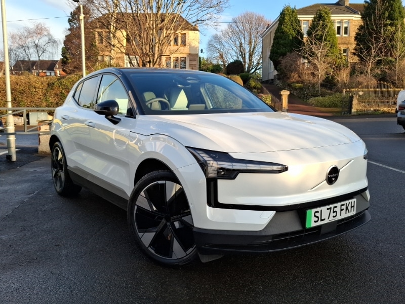 0 Previous Owners, Volvo Selekt, Power seat pack - EX30, Climate pack - EX30, 2 zone electronic climate control with air purifier PM2.5, Heat pump (Enhanced cabin heating and cooling efficiency with optimal vehicle range), High level illumination (choise of 5 colour themes,central tunel,luggage,puddle,cabin,reading and front door panel pocket lights,instrument panel ), Auto folding heated frameless power door mirrors, Auto dimming interior and driver's door mirror, Fixed panoramic glass sunroof, Rain sensor with automatic windscreen wiper activation, Harman Kardon Premium 5.1 Surround Sound 1040W - (2xC type USB Front & rear Sockets,Dashboard Soundbar with 7 Speakers), 360 Degree camera with virtual 3D view, Wireless apple carplay, Wireless/Inductive Mobile Phone Charging, Front and rear park assist, Power operated tailgate