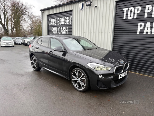 Ballyclare2 Previous Owners, This 2018 BMW X2 20d M Sport offers a compelling blend of performance and practicality. As a Euro 6 compliant model, it features a robust 2.0 litre diesel engine paired with a four wheel drive system, ensuring confident handling in various conditions. The M Sport trim enhances its sporty appeal, while a host of desirable features elevate the driving experience. These include a panoramic glass sunroof that opens up the cabin, a comprehensive Tech Pack with Bluetooth, a Head Up Display, and wireless phone charging, and a Vision Pack incorporating a rear camera for easier parking. Comfort is further assured with the Comfort Pack, providing memory seats and a heated steering wheel, complemented by the convenience of a Comfort Access System for keyless entry.This BMW X2 excels with its impressive performance figures, achieving 0 to 62 miles per hour in just 7.7 seconds, demonstrating its dynamic capabilities. Its fuel economy is also a significant advantage, returning up to 49 miles per gallon, which indicates its efficiency compared to other vehicles in its class. Furthermore, its low CO2 emissions contribute to a more environmentally conscious drive. These highlights collectively underscore the X2's appeal as a well rounded and capable premium compact SUV.