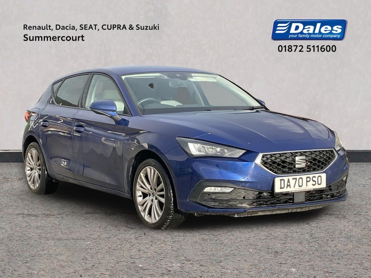 Insurance Group 19, 1 Previous Owner, The SEAT Leon 1.5 TSI EVO SE Dynamic 5Dr Hatchback in manual transmission is a stylish and practical vehicle with a vibrant blue exterior. With a fuel-efficient 1498 cc petrol engine, this 2020 model has only covered 48045 miles. It features a plethora of modern amenities, including a digital cockpit, full link smartphone integration, front assist with collision warning, lane assist, park assist with parking sensors, and a rearview camera for enhanced safety and convenience. The interior is designed for comfort and functionality, boasting features like three-zone climate control, leather steering wheel and gearstick, and a variety of storage compartments. This hatchback also offers ample space with a 60/40 split rear bench seat and plenty of safety features such as multiple airbags, ISOFIX points for child seats, and an anti-theft alarm system. The SEAT Leon combines practicality with technology to deliver a complete driving experience.