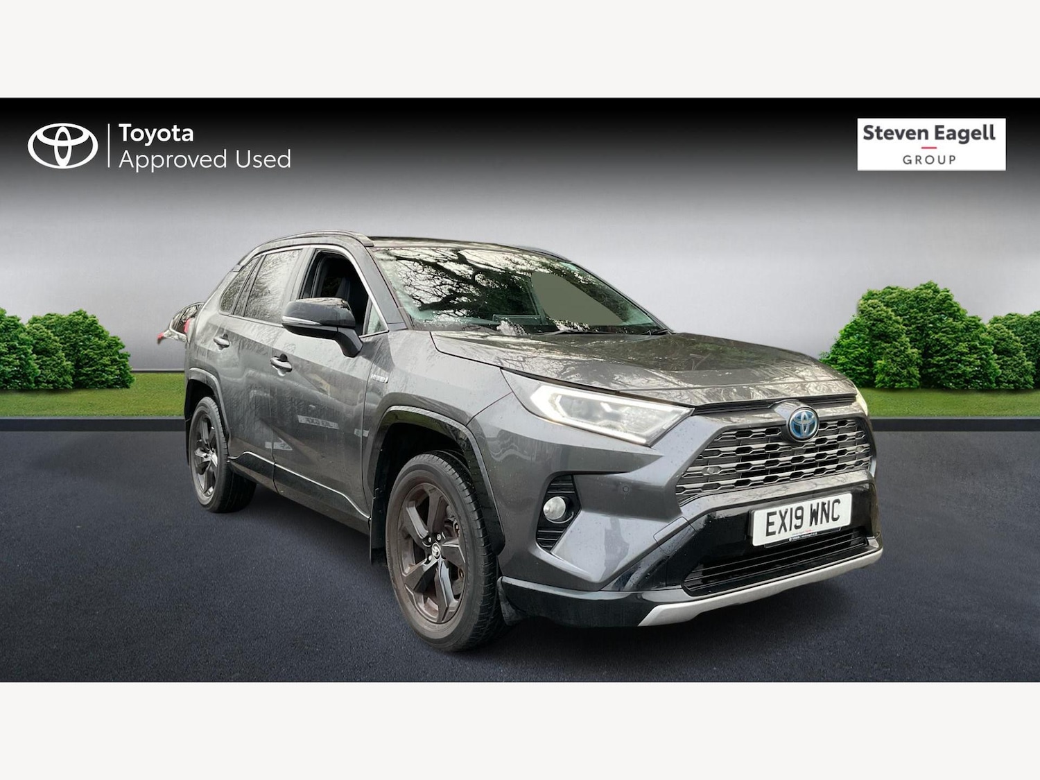 Solihull2 Previous Owners, Franchise Approved, 2019 Toyota RAV4 2.5 VVT-h Dynamic CVT AWD Hybrid Muscle with a Smart SideMeet the SUV that does *everything* without breaking a sweat. This **2019 Toyota RAV4 Dynamic AWD** pairs Toyotas powerful **2.5 self-charging hybrid** engine with a smooth **CVT automatic gearbox** and confidence-boosting **4WD**, making it just as happy on muddy lanes as it is cruising the motorway.With **42,330 miles**, its nicely run in and ready for plenty more adventures all while sipping fuel and keeping emissions in check (Euro 6 compliant). Self-Charging Hybrid Power* 2.5 VVT-h petrol-electric hybrid (no plugging in!)* Intelligent **4WD system** for added grip and confidence* Seamless CVT automatic transmission* Stop/Start (s/s) for improved efficiency Dynamic Spec Highlights* **18 alloy wheels*** **Half-leather sports seats*** **Heated front seats*** **Dual-zone climate control*** **Smart entry & push-button start*** **Electric tailgate*** **Reversing camera*** **Front & rear parking sensors*** **Satellite navigation*** **Apple CarPlay & Android Auto*** **DAB radio & Bluetooth** Safety Comes as Standard* **Adaptive cruise control*** **Lane departure alert*** **Road sign assist*** **Pre-collision system*** **Blind spot monitoring** Big, Bold & Brilliantly PracticalSpacious cabin, generous boot, split-folding rear seats and excellent all-round visibility make this RAV4 a perfect family SUV or the ideal companion for weekend escapes. Final ThoughtEfficient, powerful, comfortable and seriously well equipped this RAV4 proves you *can* have it all. A hybrid SUV with grip, tech and Toyota reliability built in. **Dont miss out enquire today!**