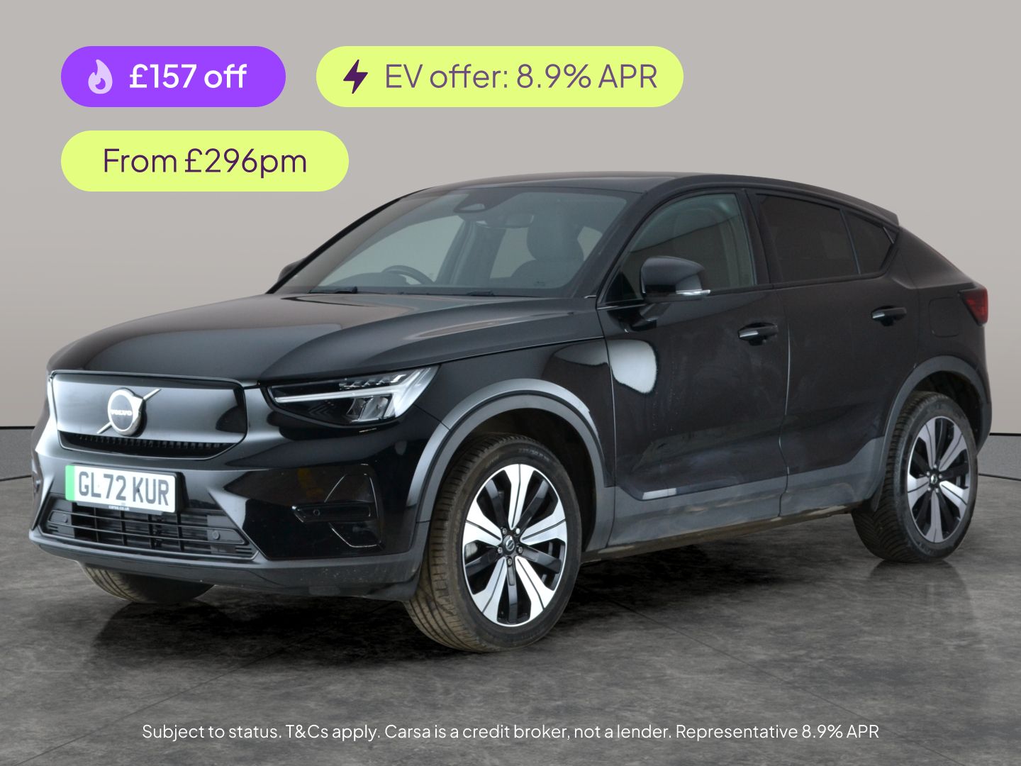 0 Previous Owners, Experience the future of driving with this Volvo C40 Recharge. Enjoy the open feel of a panoramic sunroof, stay on track with built-in sat nav, and drive confidently with lane departure warning and park assist. Stand out with striking 19in diamond-cut black alloy wheels and LED headlights. Modern comforts include climate control, cruise control and seamless Bluetooth connectivity. Finished in Black with an exclusive Charcoal City Canvas textile interior, this electric SUV blends style, safety, and innovation in one impressive package. 1 service recorded, last serviced on 06/01/2026 at 34,280 miles. MOT to 22/12/2026. Visit our website for service history, online valuation, full vehicle specification plus multiple images. This vehicle is VAT qualifying. Any feature/option specified here is from 3rd party data. We cannot guarantee the accuracy of any specification supplied by a 3rd party. We recommend that you physically check the specification of the vehicle on site prior to purchase. This information does not form part of the buying contract. Terms & Conditions apply. We have over 2,000 cars available from our 10 national branches, check our website to see all our stock. Our Trustpilot rating is 4.4/5 with over 9,000 reviews.