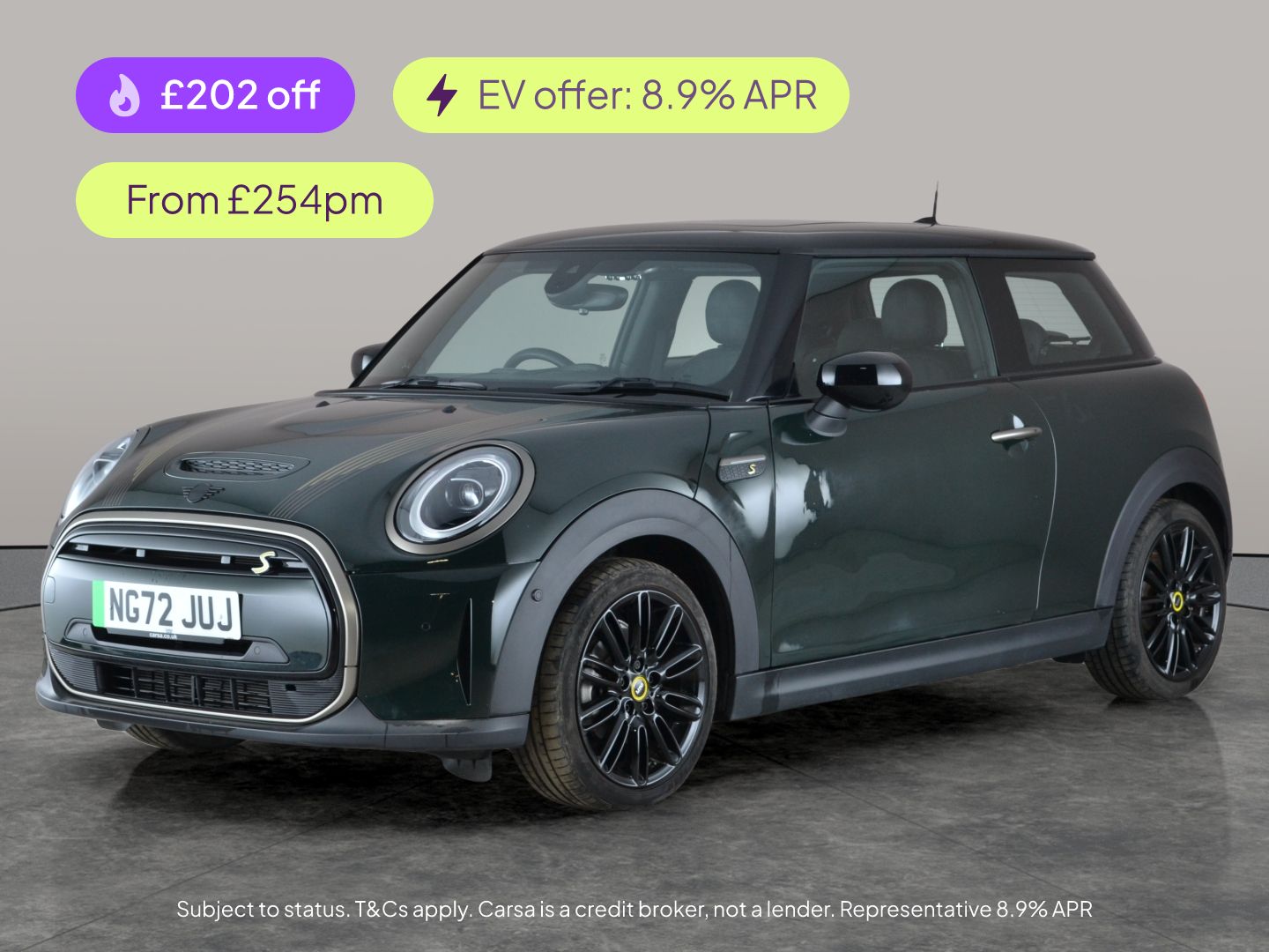 Towcester0 Previous Owners, Experience driving excitement with this green Mini Electric Hatch Cooper SE. Enjoy the luxury of MINI Yours Lounge Leather seats and a stunning panoramic sunroof for those bright days. Stay comfortable with heated seats and take the stress out of parking with Park Assist and a reversing camera. The Harman/Kardon sound system brings your favourite tunes alive, while LED adaptive headlights ensure you see and are seen. Keyless entry and Comfort Access add extra convenience to your daily drive. 1 service recorded, last serviced on 14/01/2025 at 4,318 miles. MOT to 23/12/2026. Visit our website for service history, online valuation, full vehicle specification plus multiple images. This vehicle is VAT qualifying. Any feature/option specified here is from 3rd party data. We cannot guarantee the accuracy of any specification supplied by a 3rd party. We recommend that you physically check the specification of the vehicle on site prior to purchase. This information does not form part of the buying contract. Terms & Conditions apply. We have over 2,000 cars available from our 10 national branches, check our website to see all our stock. Our Trustpilot rating is 4.4/5 with over 9,000 reviews.