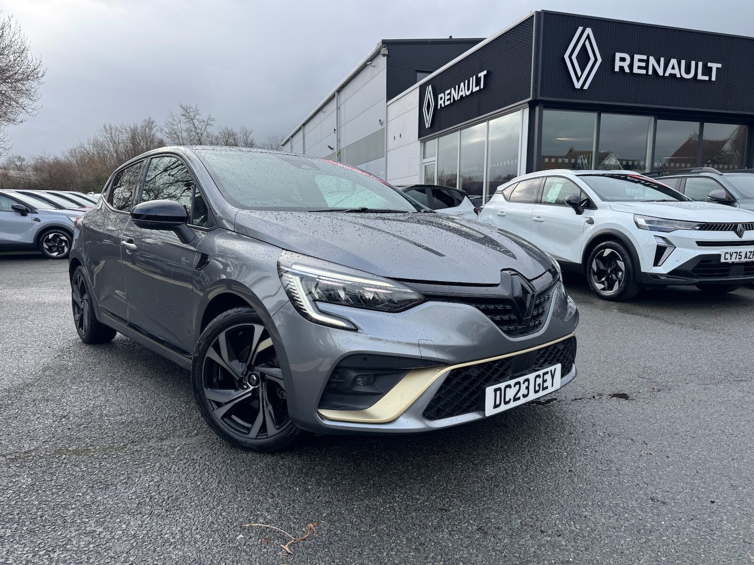 Insurance Group 14, 0 Previous Owners, ..10'' driver information display cluster, Apple car play/Android Auto, Cruise control + speed limiter, Ecall, Easy link navigation with 9.3'' touchscreen+4x20W amplifier+FM DAB double tuner, sound auditorium, 2xUSB/1xjack/bluetooth, smartphone integration plus, Eco mode driving function, Emergency call system, Front parking sensors, Gear change indicator, Lane departure warning system, Lane keep assist, Over speed prevention warning, Rear parking sensors, Rear view camera, Traffic sign recognition, Trip computer, Variable assistance electric PAS, ETECH battery, Auto dimming rear view mirror, Auto high beam assist, Auto light control and rain sensing wiper, Automatic headlights, Black Renault logo front and rear, Black wing mirrors, Body colour door handles, Bumpers gold styling elements, Chrome front grille, Drivers one touch window with antipinch feature, ETECH badging, gold sports front bumper, sports lower grill, side and rear ETECH engineered markings and gold detailing, Electric front windows, Electric rear windows, Exterior rear hidden door handles, Extra tinted glass on rear windows + tailgate, Front and rear LED roof light x 2, Full Cshape LED front and rear signature lighting, Full LED front and rear headlamps integrating daytime running lights at the front and rear, Gun Metal insert on lower side doors with Clio embossing, Heated rear windscreen, LED front fog lights, LED reverse light, LED third brake light, Manual folding wing mirror mechanism, Manually adjustable door mirrors, Rear fog lights, Rear roof spoiler gold styling elements, Rear side wing doors, Rear wiper, Shark fin antenna, Variable speed on front windscreen wipers, 12V Accessory socket, 3 rear height adjustable headrests, 3 seat bench in 2nd row, 6.2L front glovebox, 60/40 split and fixed base rear seat bench, Air recirculation control, Auto climate control, Black headlining, Black hooks on boot floor x 4, Centre console with storage and armrest, Dark roof lining and aluminimum pedal set, ETECH Engineered interior trim including airvent gold stripe, renault diamond gold surround and gearshifter with gold stitching, Fabric upholstery, Front cupholders, Front decor strip in red, Front door storage bin, Height adjustable front headrests, Height/reach adjust steering wheel, Isofix system on outer rear seats, Luggage nets in boot, Mechanical height adjustable front seats, Multi function steering wheel, Multisense including ambient lighting and selectable drive modes,