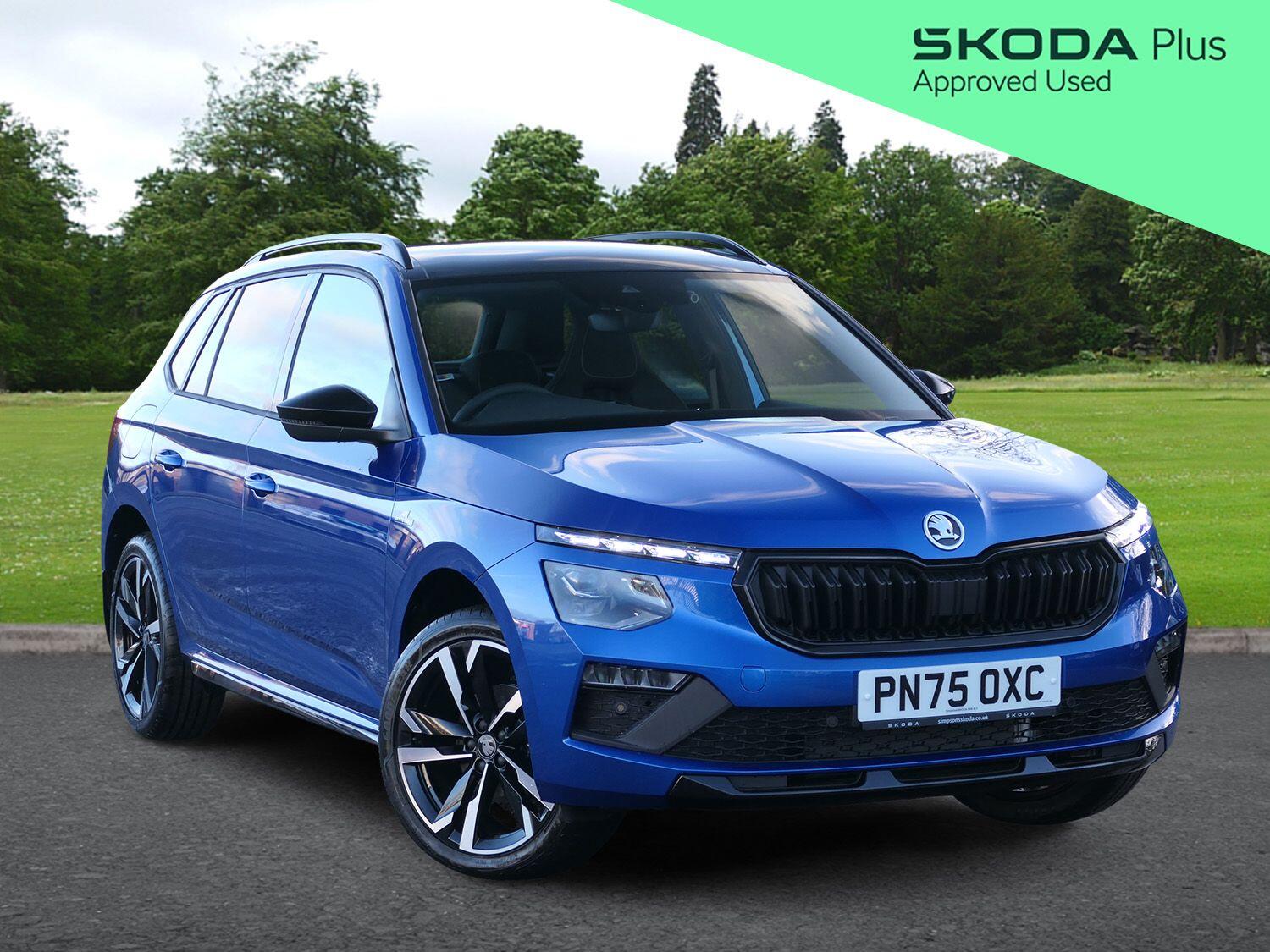 0 Previous Owners, Advanced driver attention and drowsiness monitor, Bluetooth system, E-call, Front assist system, PAS, Rear parking sensors, Rear view camera, Service indicator, Speed limiter, Traffic sign recognition, Virtual cockpit with 10.25" display, Voice control system, Wireless smartlink, 4 USB C ports, 8 Speakers, 9.2" Skoda navigation display, DAB Digital radio, Auto dimming rear view mirror, Automatic headlight control with coming home and leaving home feature, Black door mirrors, Black radiator grille, Black rear diffuser, Black roof spoiler, Body colour bumpers, Body colour door handles, Boot lettering in black, Extended tailgate glass, Fixed panoramic sunroof with black roof rails, Front and rear electric windows, Heated rear window, LED daytime running lights, LED high beam, LED low beam, LED third brake light, Light sensors, Monte carlo plaque, Privacy glass, Rear side wing doors, Rear wiper, Ticket holder inside windscreen, 12V socket in luggage compartment, 3 seat bench in 2nd row, Aluminium pedals, Ambient lighting in white/red, Art leather carbon decor inserts, Art leather carbon door inserts, Black roof lining, Cargo elements, Chrome inner door handles, Driver and passenger sun visors with vanity mirror, Dual zone climate control, Front and rear roof lights, Front centre armrest, Front head restraints, Glove compartment with illumination, Height adjustable driver seat, Height adjustable front passenger seat, Ice scraper, Inner circulation control with pollen filter, ISOFIX on front passenger seat, Isofix preparation for back seats, Leather gearknob and handbrake lever, Manual lumbar support for front seats, Monte Carlo cloth upholstery, Net package and top tether hooks in boot space, Net under rear shelf, Pocket on the back of both front seats include mobile phone pockets, Rake/reach adjustable steering wheel, Reading lights, Rear centre armrests, Red hotstamping, Single front passenger seat, Sports seats, Textile floor mats, Third rear headrest, Top tether for front passenger seat, Umbrella in driver's door, Light and view plus package - Kamiq, 3x3 point rear seatbelts, Airbags - driver and front passenger, Disc brakes, ESP, Extended and predictive pedestrian/cyclist protection, Front passenger airbag deactivation switch, Front side airbags with curtain airbags, Hill hold control, Manual leather parking brake, Manual rear child locks, One tone horn, Seatbelt reminder for driver an co-driver, Traction control, Tyre pressure monitor, Anti-theft alarm