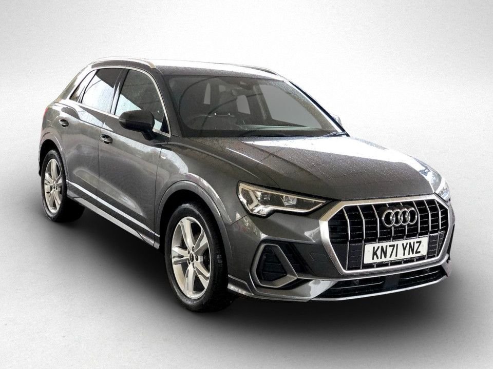 Rushden1 Previous Owner, Air Conditioning,Alloy Wheels,Bluetooth,Climate Control,Cruise Control,Electric Mirrors,Electric Windows,Front Fog Lights,Heated Mirrors,Heated Seats,Half Leather,Multi Function Steering Wheel,Parking Sensors,Rain Sensors,Satellite Navigation,Xenon Headlamps.12V socket in rear centre console, 2 USB-C Ports with Charge and Data Functions, 3x3 point rear seatbelts, 40:20:40 folding with manual adjustment for 60:40 forwards/backwards position and backrest angle, 6 airbags - Driver, 6 passive loudspeakers, Acoustic windscreen, adjustable and heated door mirrors with integrated LED side indicators and kerb view function for passenger side, Adjustable rear seat bench/backrest with centre armrest and cupholder, Aluminium Roof Rails, Aluminium window trim, Amazon alexa Integration, Anti theft alarm, Anti theft wheel bolts, ASR and EDL, Audi connect safety and service (e-call), Audi Drive Select, Audi lane departure warning, Audi pre-sense front with pedestrain and cyclist recognition, Audi Virtual Cockpit - 10.25" display, Auto dimming frameless rear view mirror, Black cloth headlining, black with surround in aluminium look, Bluetooth Interface, Body coloured bumpers, Camera based traffic sign recognition, curtain and side windows, DAB digital radio module, Dark matt brushed aluminium inlay, Detail dashboard around MMI touch colour display in glass look, Diesel particulate filter, Dual zone electronic climate control, Electrically folding, Electrically operated child locks on rear doors, Electromechanical Parking Brake, Electronic stabilisation control including ABS, Front and rear black floor mats with contrast stitching in rock grey, Front and rear electric windows, Front and rear headrests, Front and rear roof module including reading lights, Front Centre Armrest, Front fog lights, front passenger, Front side air inlets in matt platinum grey, Front spoiler blade in matt platinum grey, Glove compartment lighting, Grille vertical bars in aluminium silver/Matt, Height and reach adjustable steering wheel, High gloss black finish B and C pillars, Hill Descent Control, Hill Hold Assist, Illuminated Door Sill Trims with S Logo, ISOFIX child seat mounting for front passenger with airbag deactivation and outer rear seat including top tether attachment point for outer rear seats, Leatherette door armrest, LED headlights with LED daytime running lights and dynamic rear indicator, LED rear lights, Luggage compartment light, Manual front seats with height adjustment, MMI Navigation Plus with high resolution 10.1 inch touchscreen colour display, Non smoking pack - Q3, Perforated leather gearknob, Power Operated Tailgate, Pre sense basic, Privacy glass dark tinted rear and rear-side windows (from B-pillar backwards), Progres
