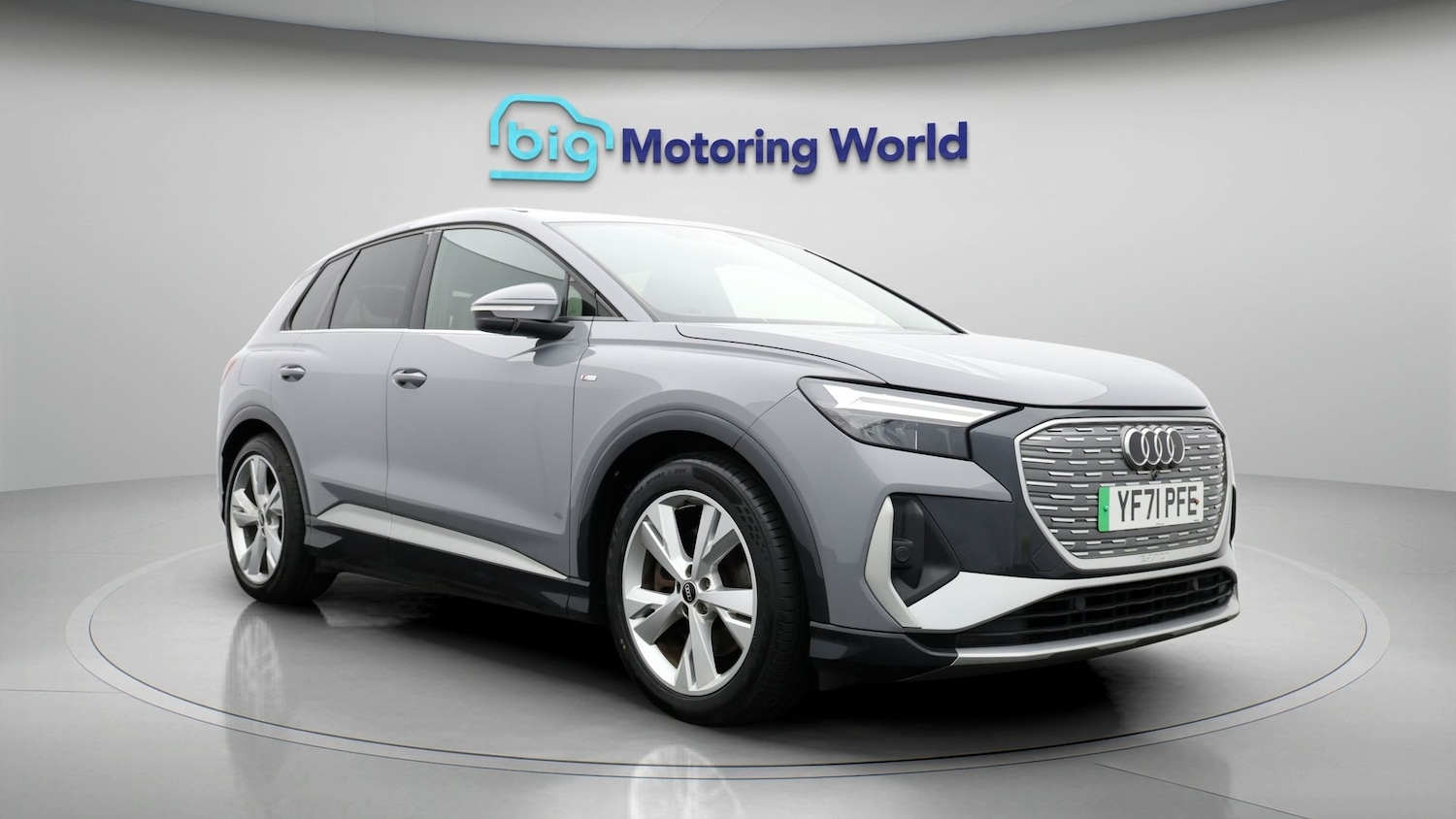 0 Previous Owners, Our Audi Q4 e-tron is finished in Grey. Specification includes a range of fantastic features including £750 towards your finance deposit, Digital Cockpit, Privacy Glass, Heated Seats, Virtual Cockpit, Rear View Camera, Bluetooth, Audi Connect, 3 Zone Climate, Keyless Go Specification information is supplied by CAPHPI and may vary to the actual car. This data  does not form any part of a buying contact. Please check specification prior to purchase in-store visit bigmotoringworld.co.uk for more photos, a 360 tour, service history and a free HPI report. We’re BIG on peace of mind and this Grey Audi Q4 e-tron has completed our comprehensive 200 point inspection and passed all checks. It’s ready for you to drive away with immediate collection in-store. We include a 90-day warranty as standard plus an option to extend for up to 3 years. Reserve this car exclusively for you, safely and securely at bigmotoringworld.co.uk, with a fully refundable £99 deposit. Test drive before you buy, with no commitment, no hassle and a completely haggle free experience. Still searching and want to see thousands more cars? We are BIG on choice with over 8000 cars to choose from. Visit our award winning web site bigmotoringworld.co.uk. We’re Big Motoring World and we’re BIG on what matters to you.