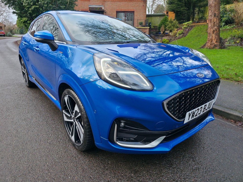 YorkInsurance Group 15, 0 Previous Owners, This 2023 Ford Puma ST-Line Vignale offers exceptional value with just one owner and a remarkably low mileage of 14,660 miles. This Euro 6 compliant 1.0L Petrol Hybrid model boasts a clear vehicle history check, ensuring peace of mind. It comes equipped with stylish 19in Alloy Wheels in a Matt Black Machined Finish, Rear Parking Sensors for easier manoeuvring, and the convenient Ford KeyFree System for keyless entry. Inside, you'll find Electronic Air Temperature Control for a comfortable cabin environment, and the Driver Assistance Pack enhances safety with Blind Spot Assistance, Adaptive Cruise Control, and a Rear Parking Camera. Experience impressive performance with this Ford Puma, achieving 0-62mph in just 8.9 seconds, a figure that demonstrates its responsiveness compared to other vehicles in its class. Furthermore, its fuel economy is a standout feature, achieving an excellent 51 mpg, making it an economical choice for your daily journeys. This combination of dynamic performance and efficient running costs sets this particular Puma apart.. Quickclear Heated Windscreen,B&O Premium Audio System and Ford SYNC 3 Navigation,Wireless Charging Pad with Electronic Air Temperature Control EATC,Cruise Control with Intelligent Speed Assist,Front Parking Sensors,Ford MegaBox Extended Bootspace,Rear Parking Sensors,Pre-Collision Assist with Autonomous Emergency Braking and Pedestrian-Cyclist Detection,Lane Keeping Aid with Lane Departure Warning,Ford KeyFree System,18in Alloy Wheels - Unique 5x2-Spoke - ST-Line Vignale,Privacy Glass,Vignale Body Styling Kit,Automatic Dimming Rear View Mirror,Electronic Air Temperature Control - EATC,Ford Power Starter Button,Front Seats - Sports Style,Full Digital 12.3in Instrument Cluster,Selectable Driving Modes - Normal - Eco - Sport - Slippery and Trail,Sports Suspension,Driver Assistance Pack,19in Alloy Wheels - 5-Spoke - Matt Black Machined Finish,Premium Sensico - Black with Metal Grey Stitching